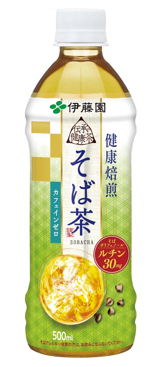 カフェインゼロで、安心してお飲みいただけるそば茶飲料です。 香ばしいおいしさが特徴の「普通そばの実」と、健康性の高い「韃靼そばの実」の2種をブレンドし、香ばしいおいしさと健康性を兼ね備えました。 そば茶の特有の甘香ばしさと後味の甘みを引き出しました。 そばポリフェノール(ルチン)を1本当たり30mg含有し、日々の健康をサポートします。 そばポリフェノール(ルチン)・・・ポリフェノールの一種であるルチンは、「そば」に多く含まれる健康成分。 500ml当たり、たんぱく質(0g)、脂質(0g)、炭水化物(0g)、食塩相当量(0.08g)、ルチン(30mg)、カフェイン(0mg)