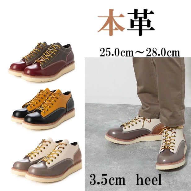 本革 メンズ ワークシューズ enbridgeインソール ブーツ ショート カジュアルブーツ 柔らか素材 履きやすい 歩きやすい おしゃれ サドルシューズテイスト ローカット オールシーズン