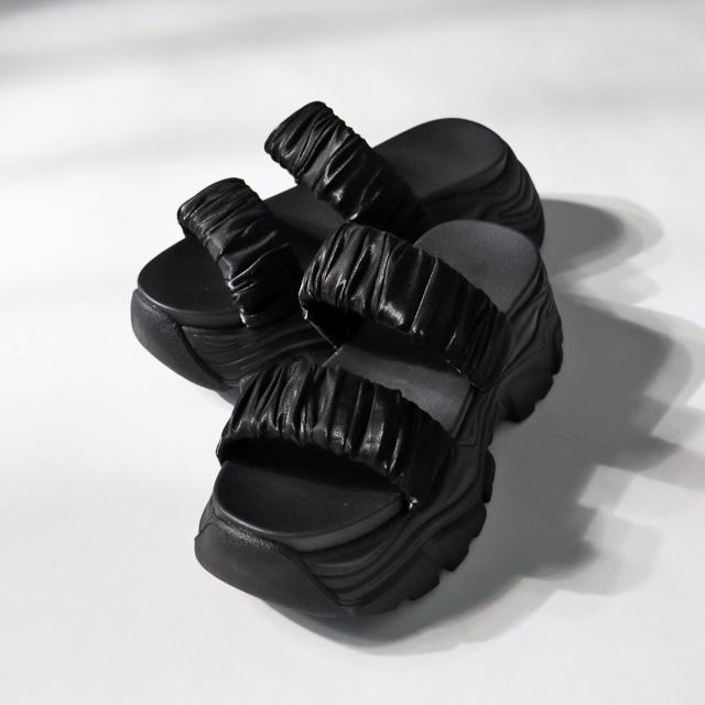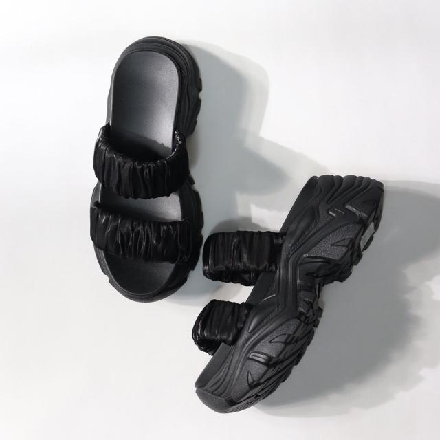 程よい光沢感のある生地を使用し、ボリューム感もあるギャザーベルトデザインがアクセントになるスポーツサンダル!