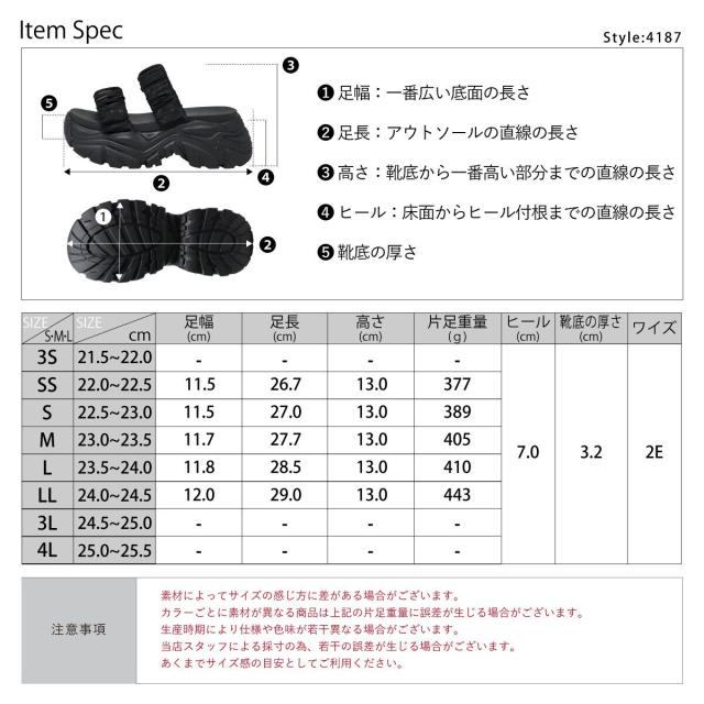 ★ダブルシフォンベルト厚底スポーツサンダル★4187