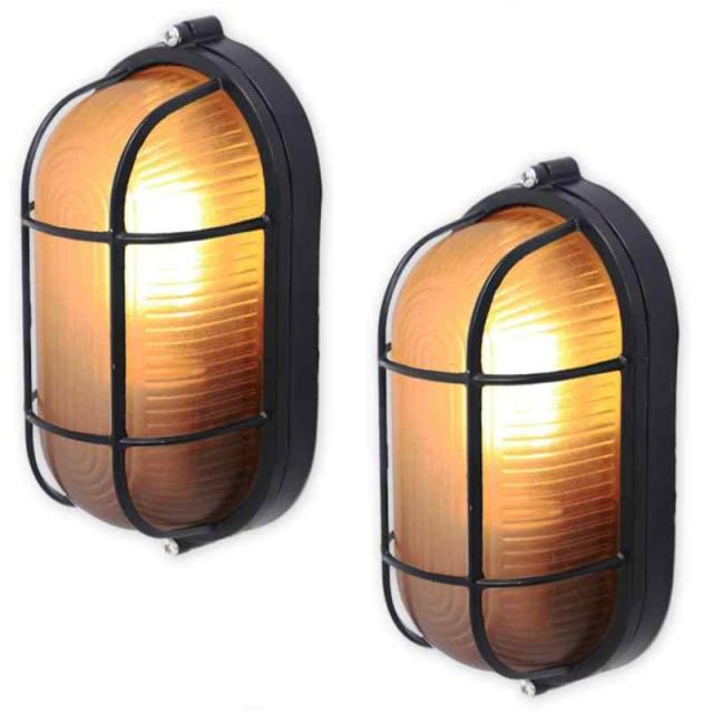 (アウプル) 壁掛け照明 マリンランプ レトロ インダストリアル デザイン ヴィンテージ アンティーク (黒 × 曇ガラス 2個セット)