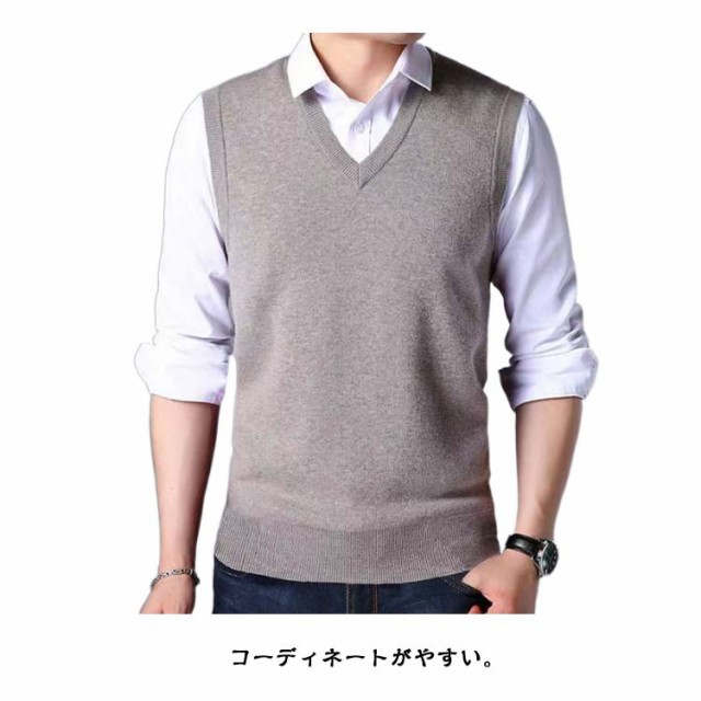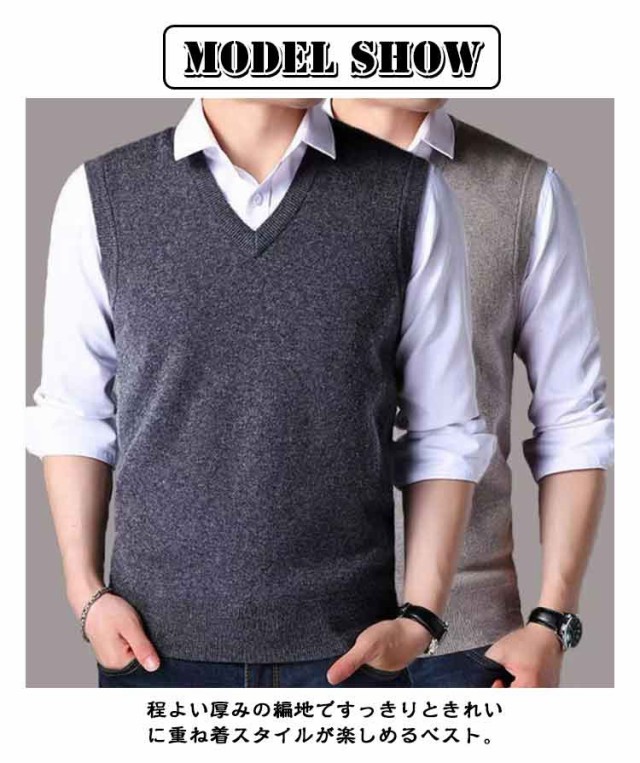 | 【ニット素材、オールシーズン着用できるのメンズ用ニットベスト】 程よい厚みの編地ですっきりときれいに重ね着スタイルが楽しめるベスト。 シンプルな定番デザイン。 コーディネートがやすい。 Vネックベストデザインで、カジュアルからオフィスまで幅広く対応。 カジュアルなのにオシャレ、コーディネートも楽。定番のシャツにさっと羽織っておしゃれの完成です。 ロンTやシャツなどと合わせるお勧め。 | |