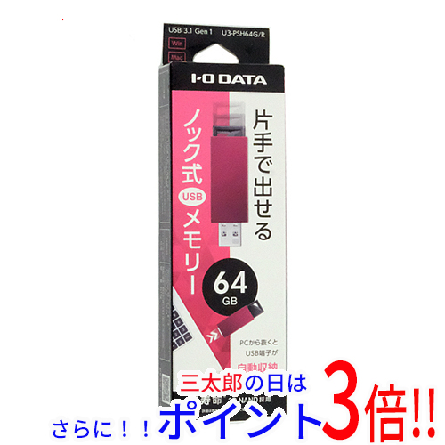 【1日と三太郎の日はポイント3倍!!】【新品】送料無料 アイ・オー・データ I-O DATA USBメモリ U3-PSH64G/R 64GB レッド【ゆうパケット対応】