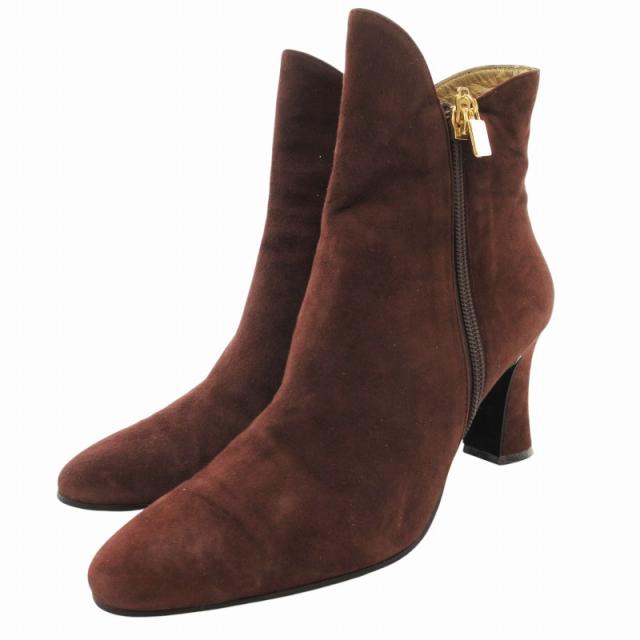 【中古】イヴサンローラン YVES SAINT LAURENT ショートブーツ チャンキーヒール サイドジップ スエード 35