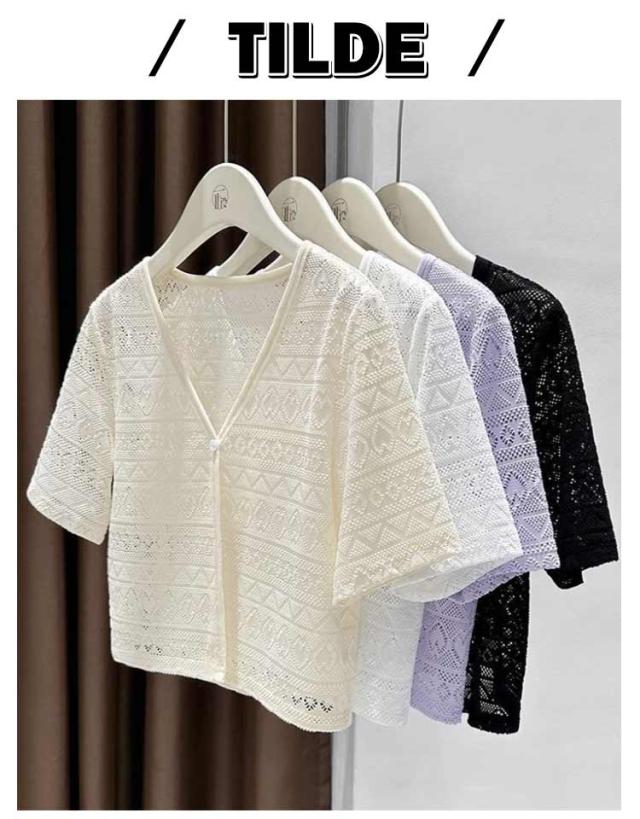 羽織り サマーニット サマーカーディガン カットワーク 透かし編み 薄手 レディース カーディガン Vネック ボレロ 透け 春夏 おしゃれ 軽量 羽織 薄手 ニットカーディガン ニット トップス アウター 夏服 春夏秋 きれいめ 半袖カーディガン