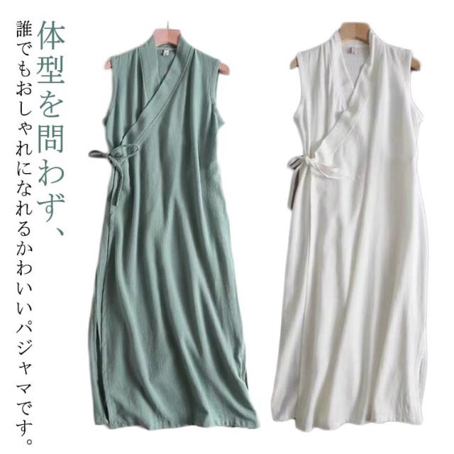 ノースリーブワンピース 夏 紐付き レディース ゆったり 浴衣式 タンクトップ 和服式 薄い トップス ベスト アウトドア 大きいサイズ 袖なし 無地 レイヤード ノースリーブワンピース 部屋着 ルームウェア ナチュラル シンプル カジュアル