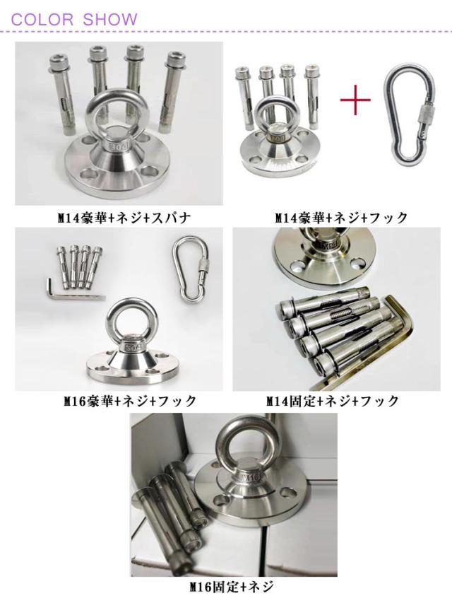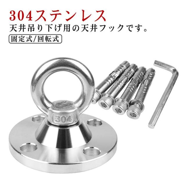 フック 下げ 固定式 吊り エアリアルヨガ 金具 304ステンレス 回転式 天井 天井フック 吊り ハンモック ハンキングチェア チェアハンモック サンドバッグ 吊り下げ金具 セット アンカー スクリュー ネジ