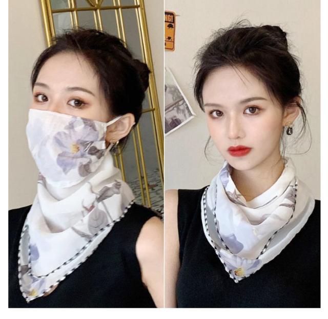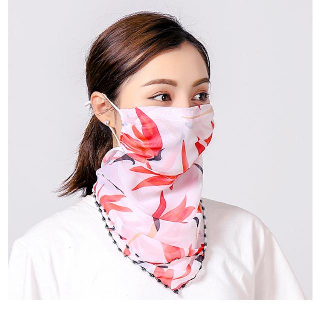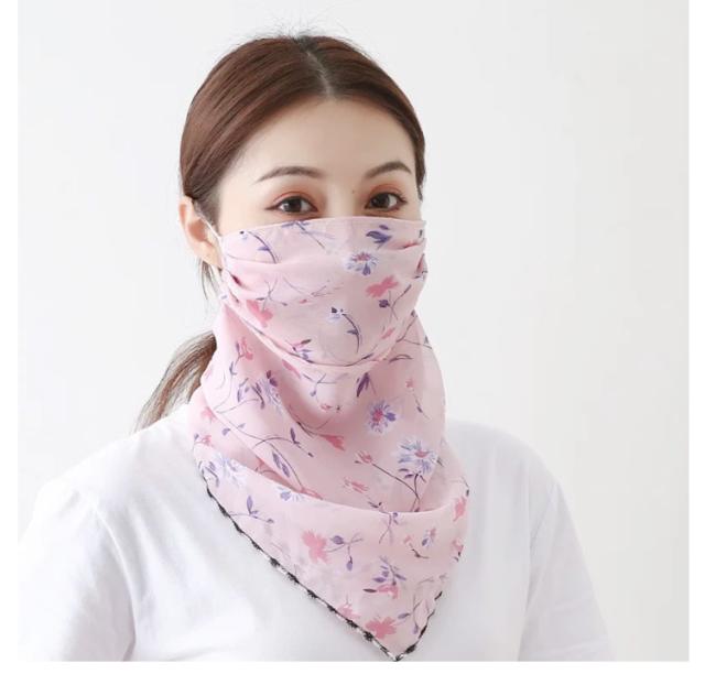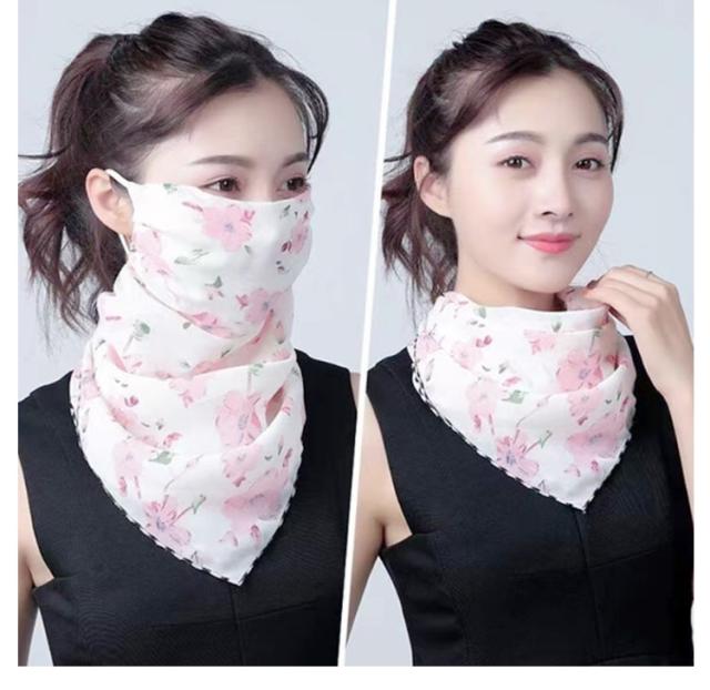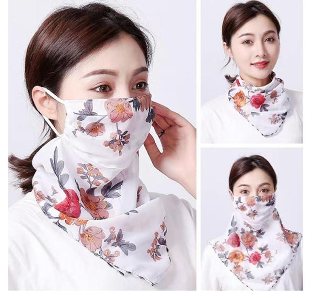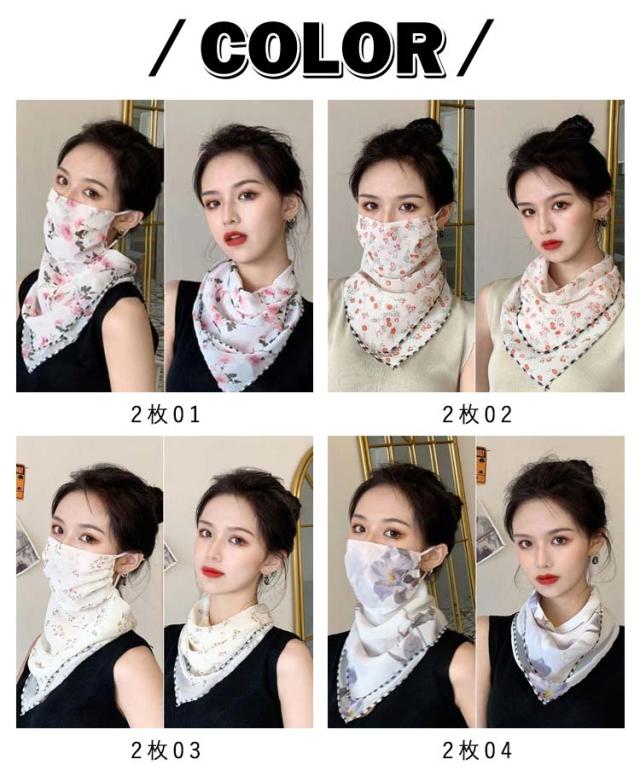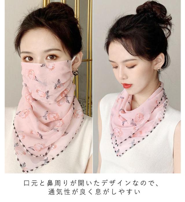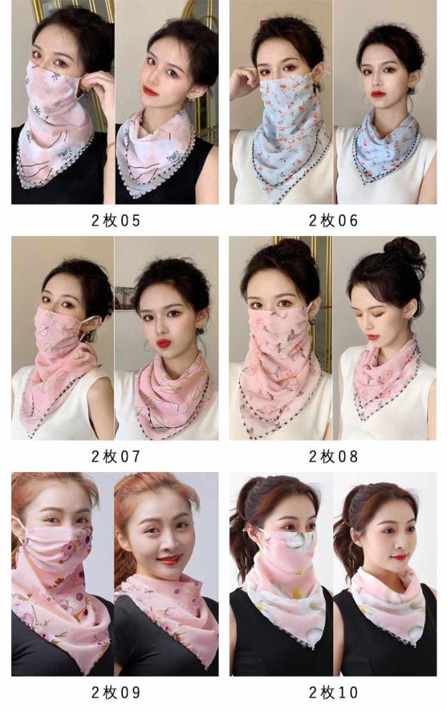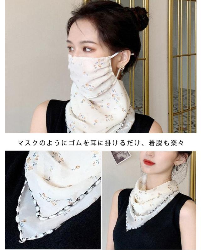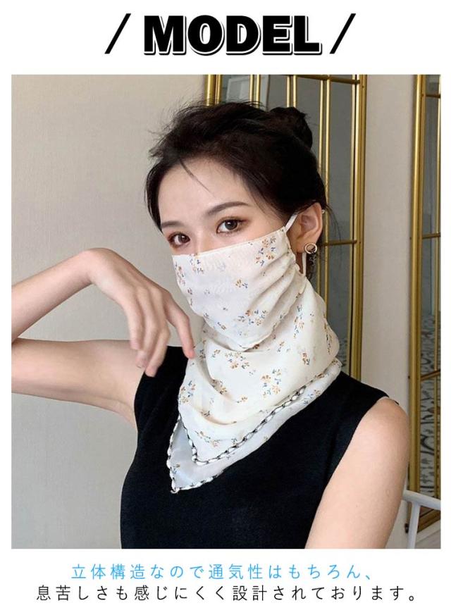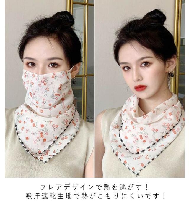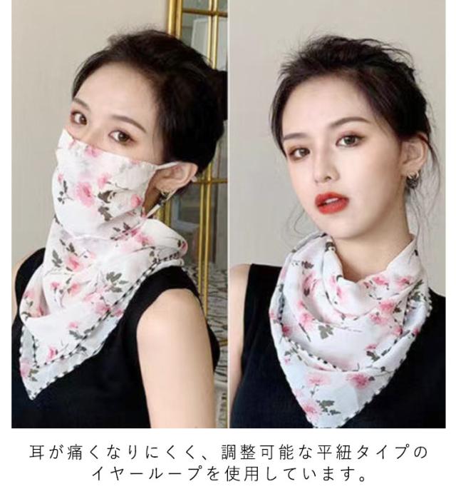 フェイスカバー uvカット ネックガード 花柄 フェイスガード 洗える UV フェイスマスク ゴルフ レディース 防塵 マスク 耳かけ uvマスク 息苦しくない 呼吸しやすい 通気性 冷感 防菌 スカーフ メガネが曇らない 日焼け防止 紫外線対策 自転車 2枚セット 作業用 春