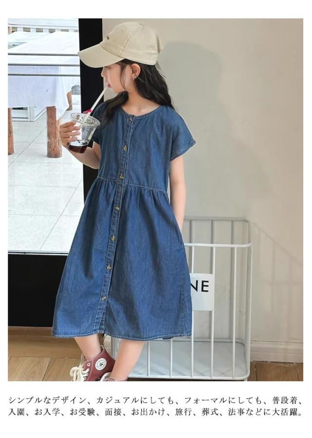 | ラウンドネック、キッズデニムワンピースです。 ワンピースがお嬢様っぽくすごく可愛いです。 シンプルなデザイン、カジュアルにしても、フォーマルにしても、普段着、入園、お入学、お受験、面接、お出かけ、旅行、葬式、法事などに大活躍。 | |