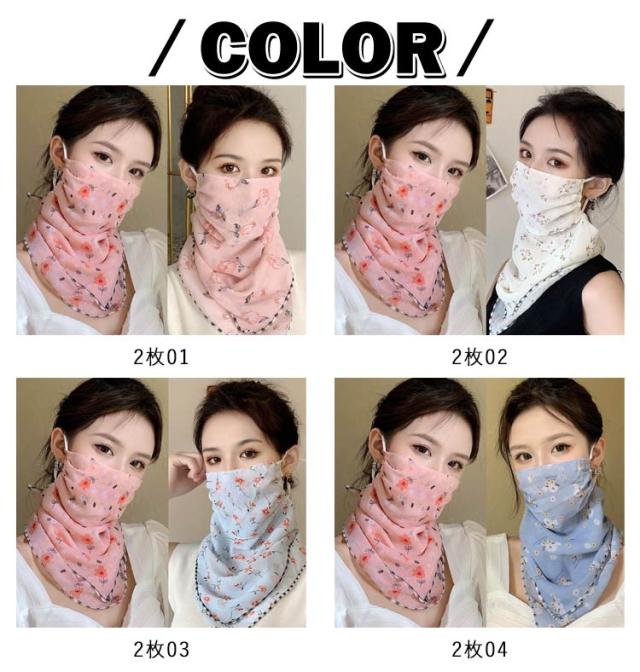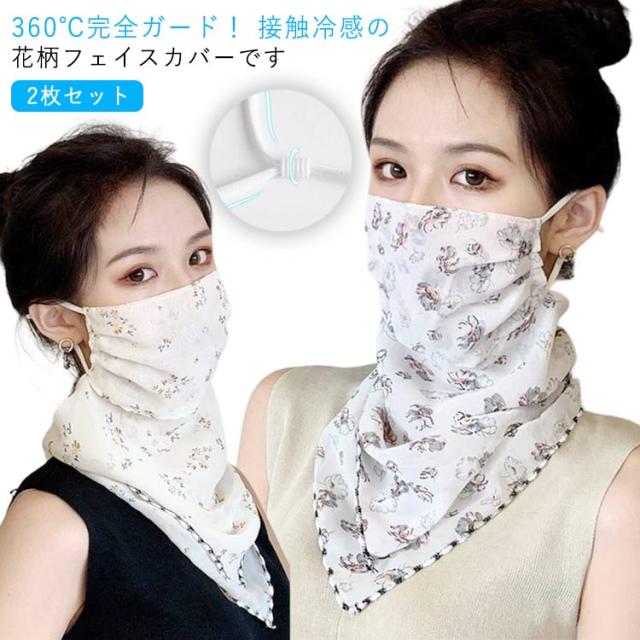 マスク フェイスカバー フェイスマスク 防塵 冷感 フェイスガード レディース メガネが曇らない 2枚セット 花柄 息苦しくない 呼吸しやすい uvマスク ネックガード スカーフ 耳かけ 通気性 uvカット 防菌 洗える 2枚セット 日焼け防止 紫外線対策 自転車 ゴルフ 作業用 春
