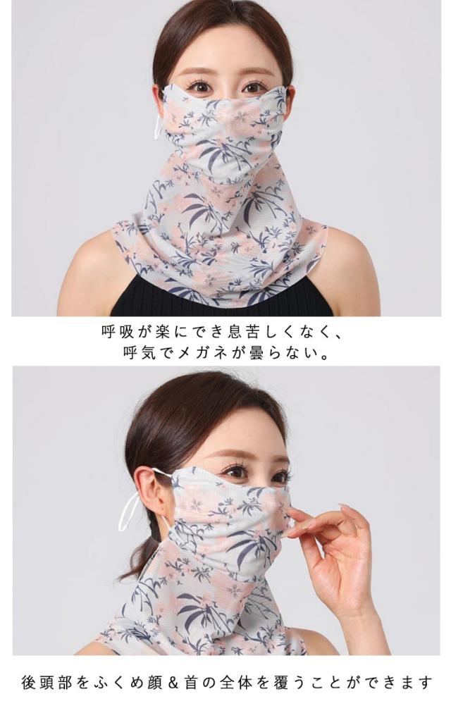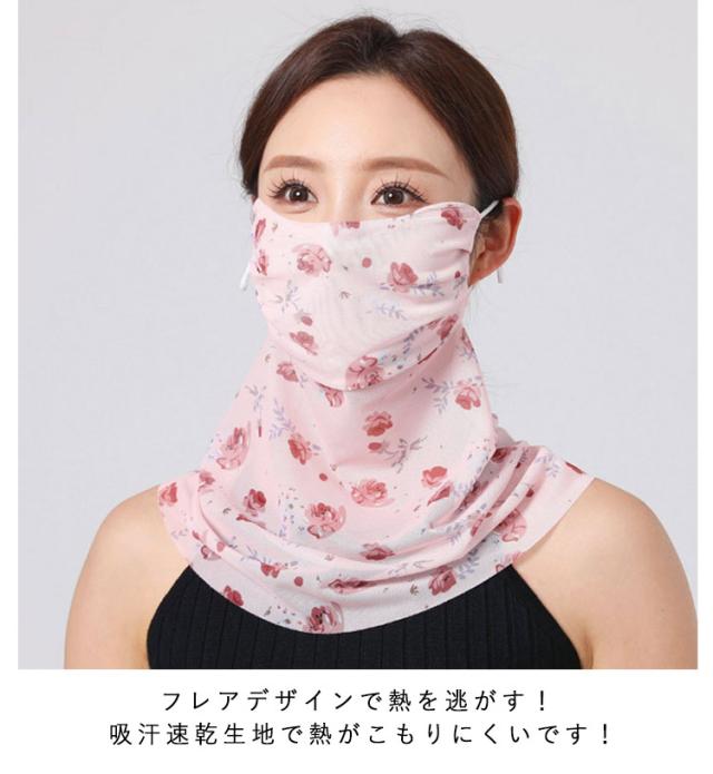 フェイスマスク レディース 2枚セット 耳かけ 2枚セット 冷感 uvカット 防菌 花柄 息苦しくない マスク フェイスガード 呼吸しやすい uvマスク スカーフ ネックガード UV 防塵 メガネが曇らない 洗える ゴルフ 日焼け防止 紫外線対策 自転車 フェイスカバー 作業用 春