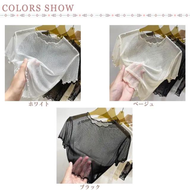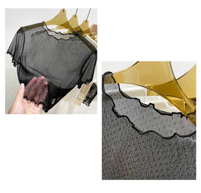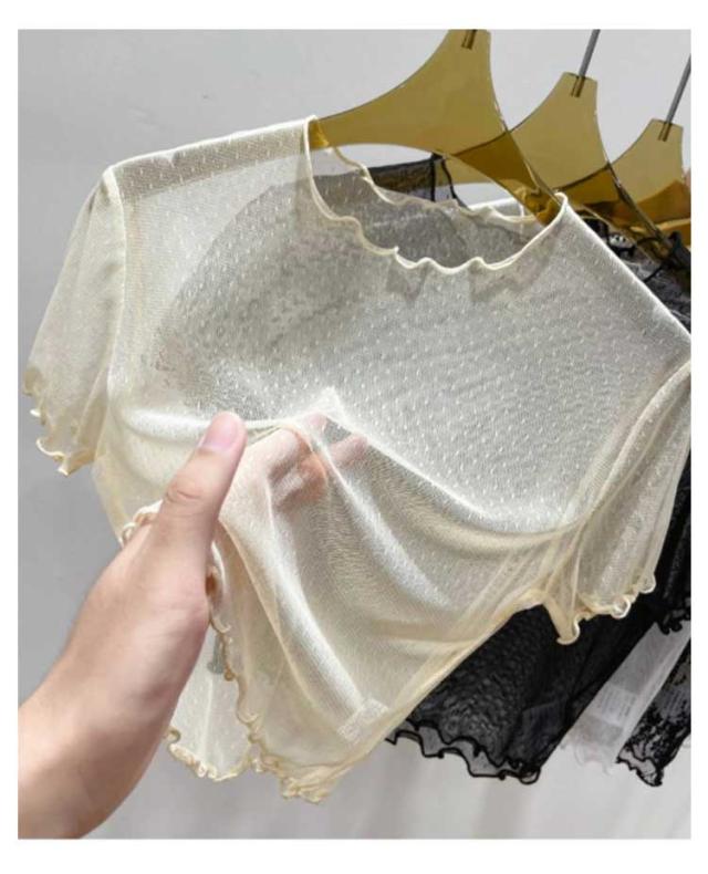 レース シアートップス インナー シアートップス レイヤード 透け感 半袖 ドット柄 フリル シアートップス ショート丈 トップス レース 薄手 きれいめ プチハイネック レディース プルオーバー モックネック 薄手 重ね着 UV対策 紫外線対策 シースルー トップス