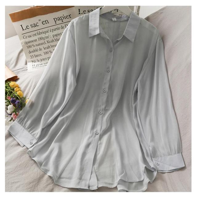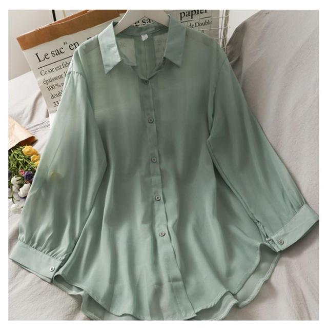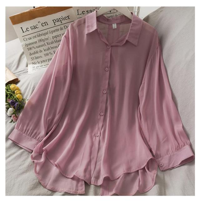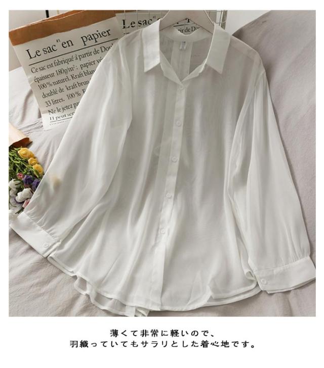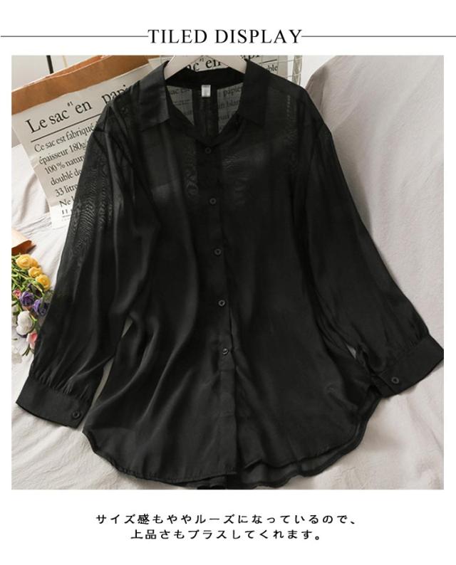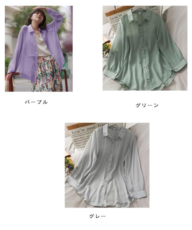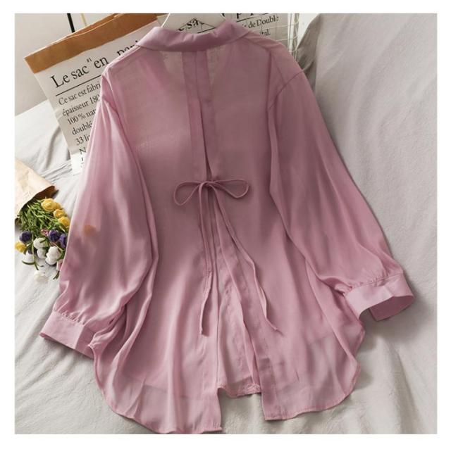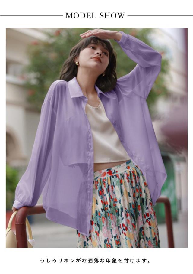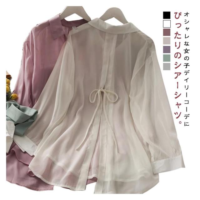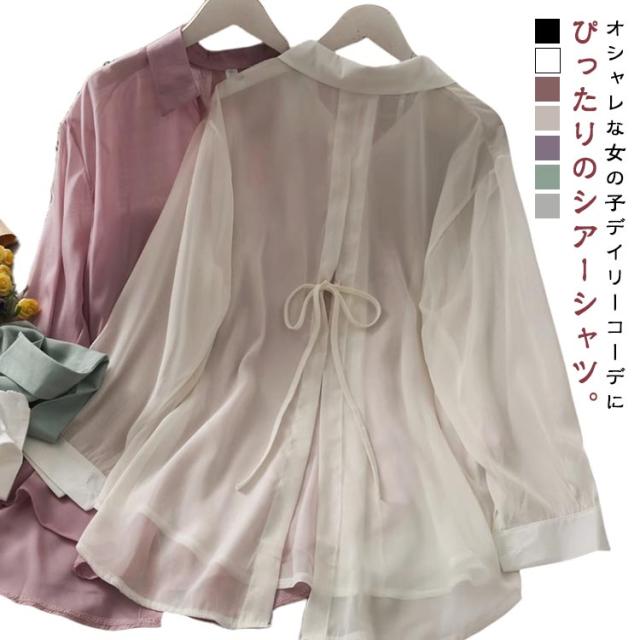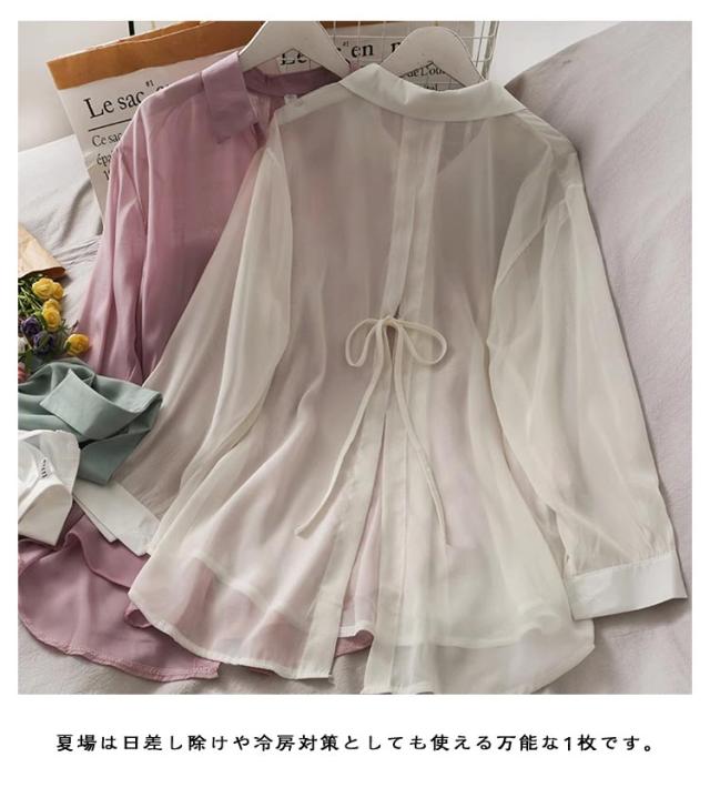 後ろリボン シースルシャツ ぽわん袖 ふんわり ゆったり 長袖 トップス 前開き リラックス ブラウス 日焼け防止 透け感 シースルー 羽織り 涼しい UV対策 重ね着 オーバーサイズ 冷房対策 夏物 送料無料