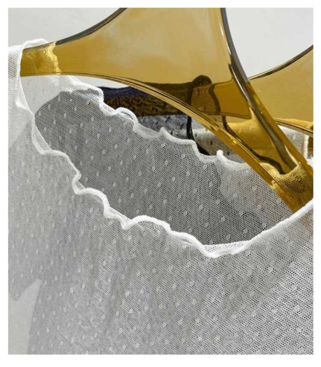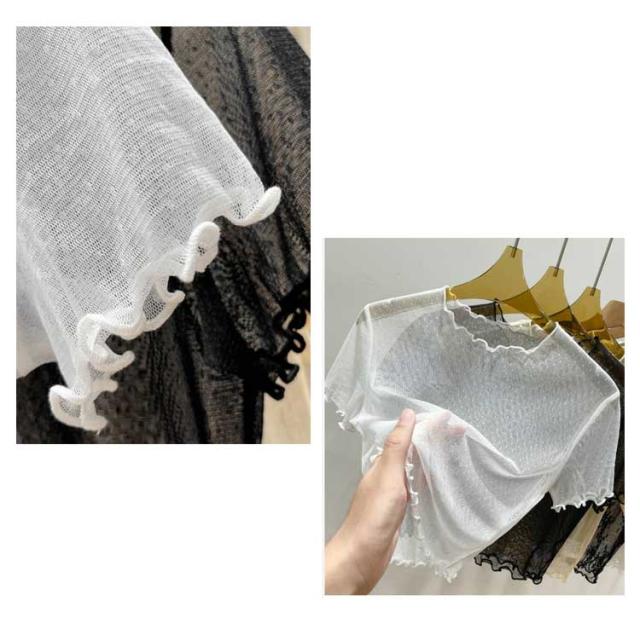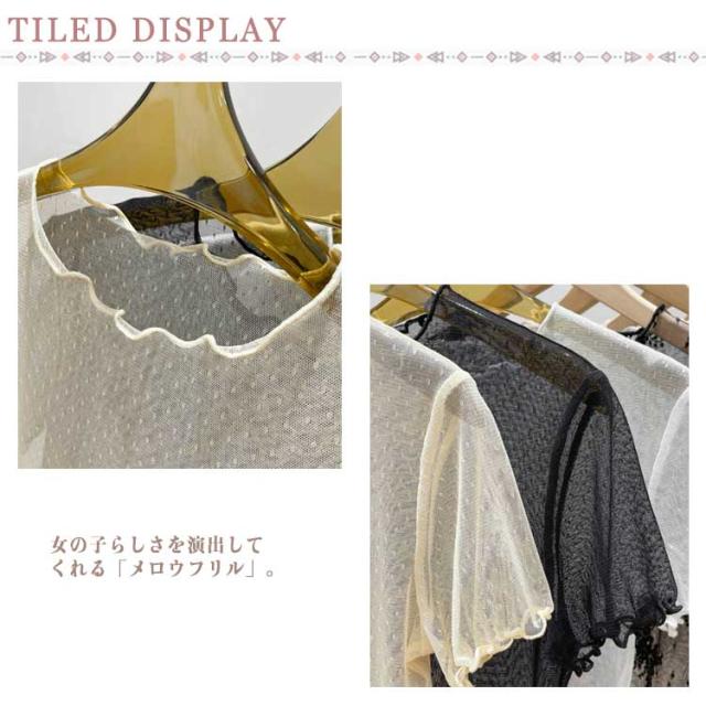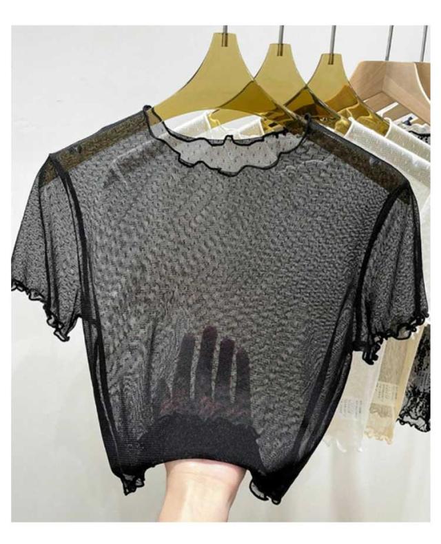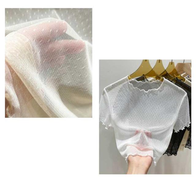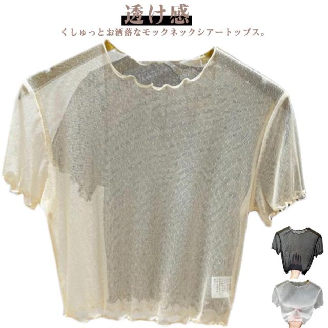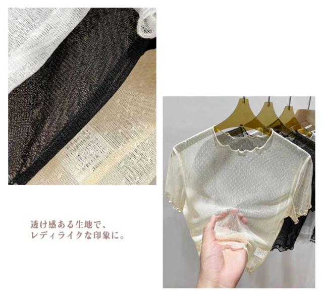シアートップス ショート丈 レース きれいめ ドット柄 透け感 プチハイネック フリル シアー レディース インナー トップス 半袖 薄手 シアートップス シアートップス レース プルオーバー モックネック 薄手 重ね着 UV対策 紫外線対策 シースルー トップス