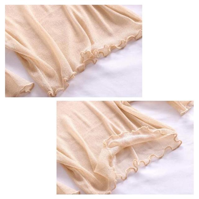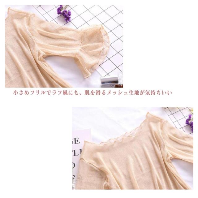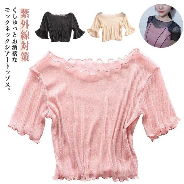 シアートップス 透け感 半袖 シアー トップス シアートップス レース レース シアートップス フリル ショート丈 レイヤード インナー 2タイプ選べる きれいめ プルオーバー レディース プチハイネック モックネック 薄手 重ね着 UV対策 紫外線対策 シースルー トップス