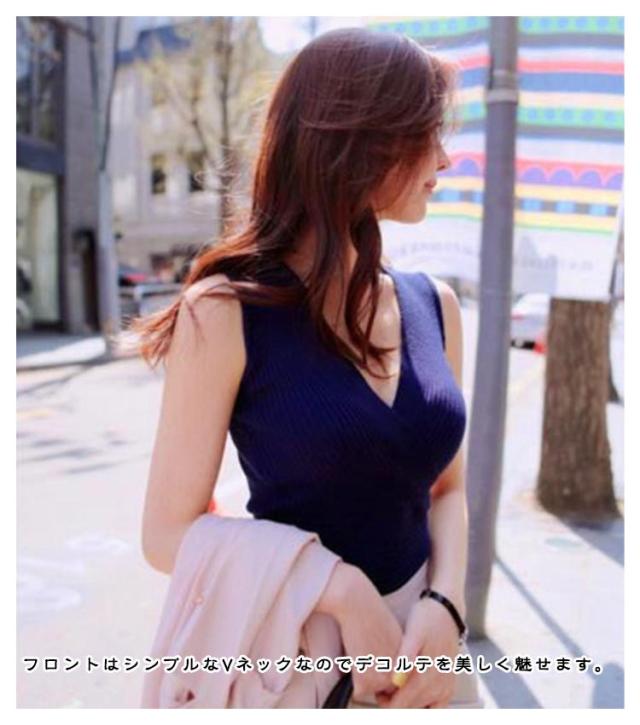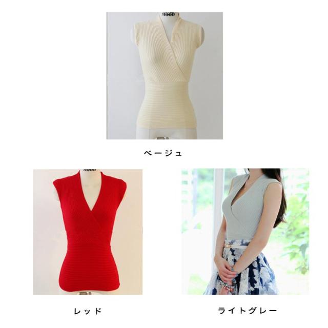 | 体のラインをキレイに見せてくれるカシュクールリブニット。 ボディラインにフィットし、リブが縦長を強調することでメリハリあるシルエットに。 フロントはシンプルなVネックなのでデコルテを美しく魅せます。 無地のシンプルなデザイントップスは、いろんなボトムスに合わせやすいのも特徴です。 | |