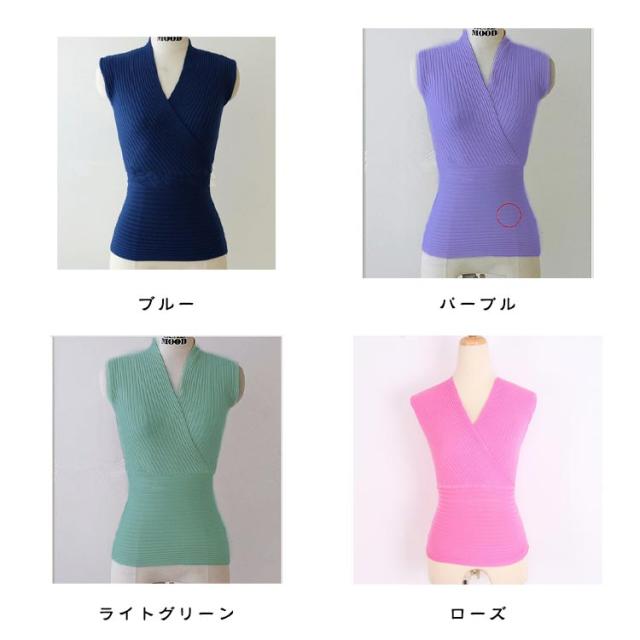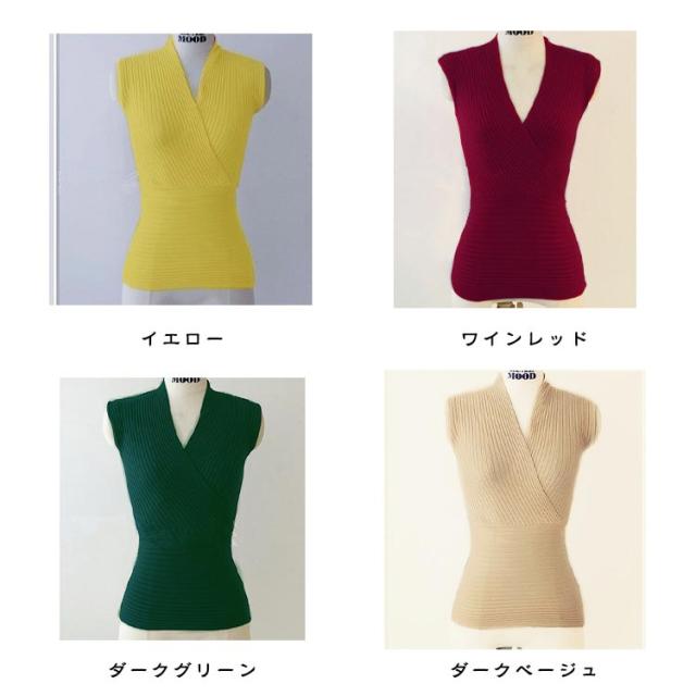 サマーニット ショート丈 レディース トップス キャミソール 深い Vネック クロス カットソー タンクトップ セクシー ストレッチ 細身 カシュクール リブニット タイト 春 夏 ヨガ ダンス きれいめ 細見え 無地
