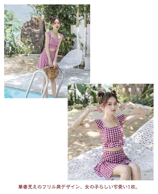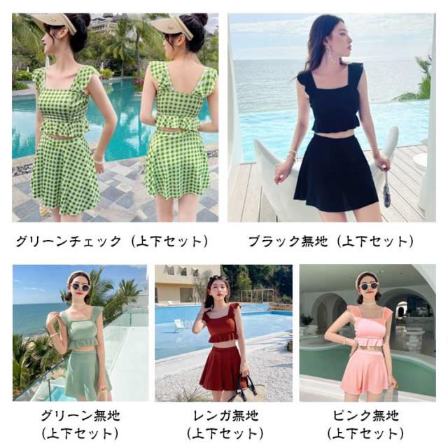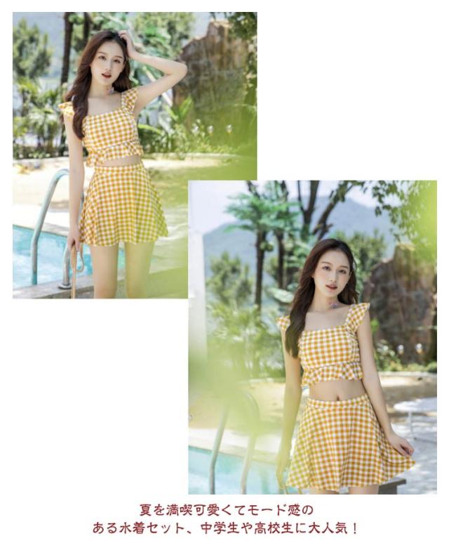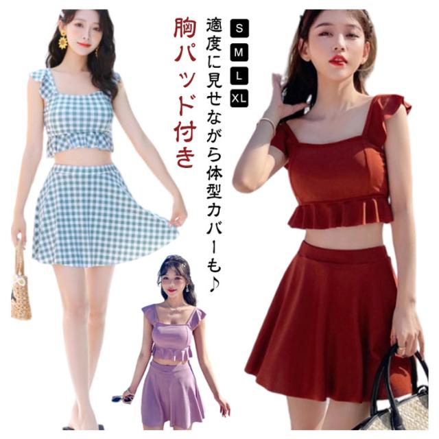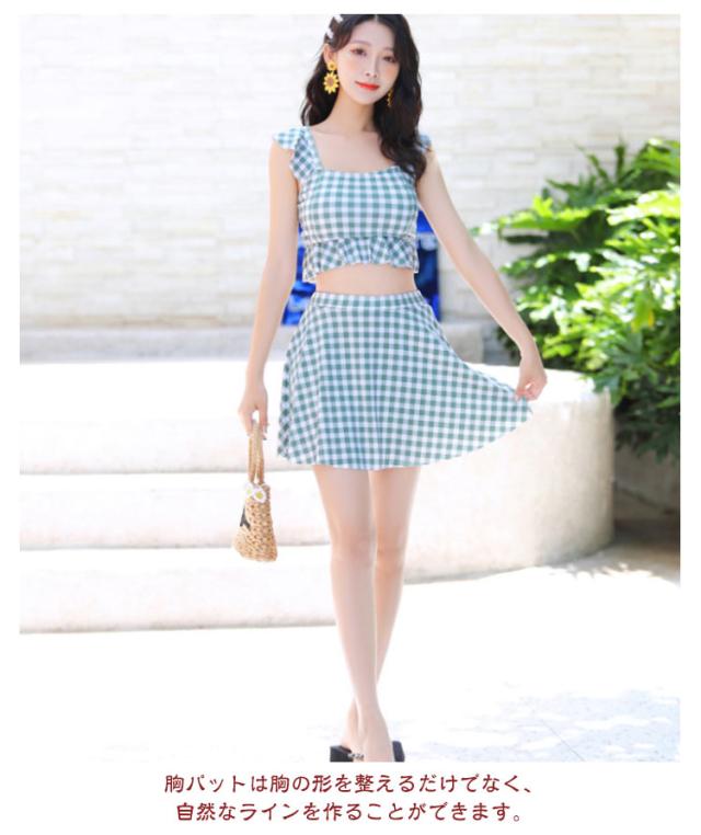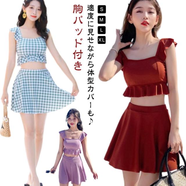 高校生 ノンワイヤー かわいい タンキニ 小胸 中学生 韓国ファッション 露出控えめ セパレート 水着 フリル 女子 胸パッド付き フレア 体型カバー スカート 上下セット 温泉 プール レディース