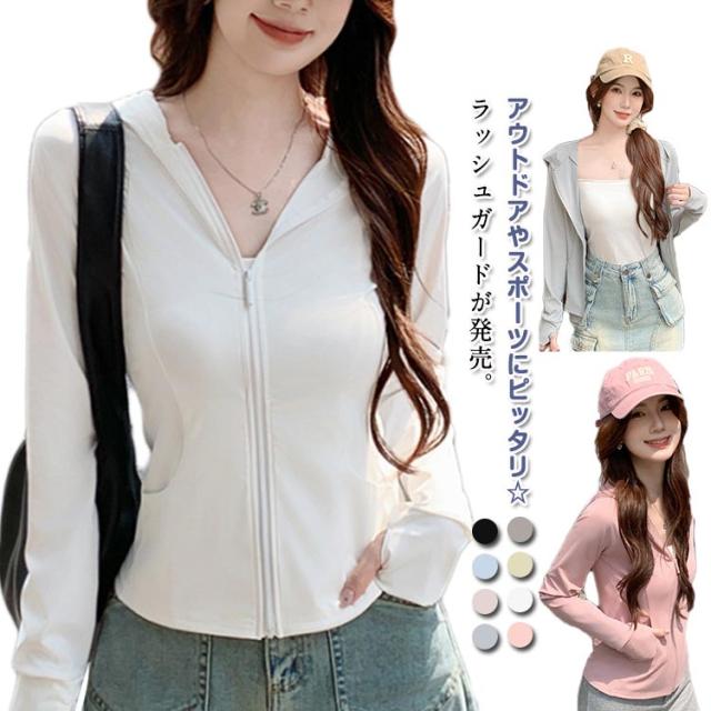接触冷感 送料無料 UV対策 レディース 羽織り パーカー ママ トップス 紫外線対策 UVカットパーカー 上着 紫外線カット フード付き 送料無料 薄手 通気性 ラッシュガード 大人 女の子 長袖 夏 秋