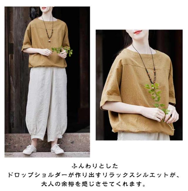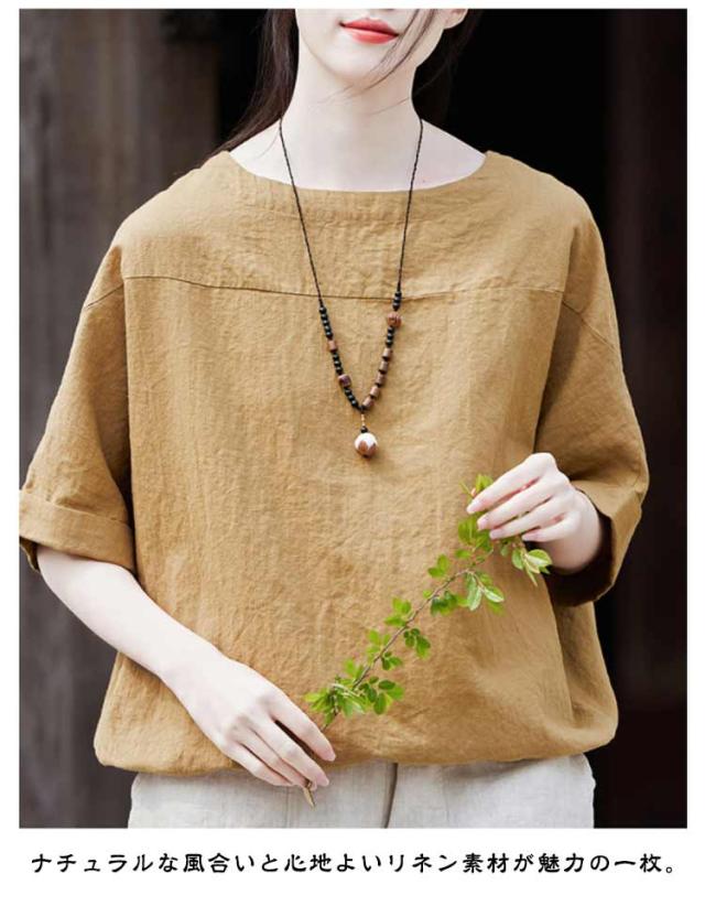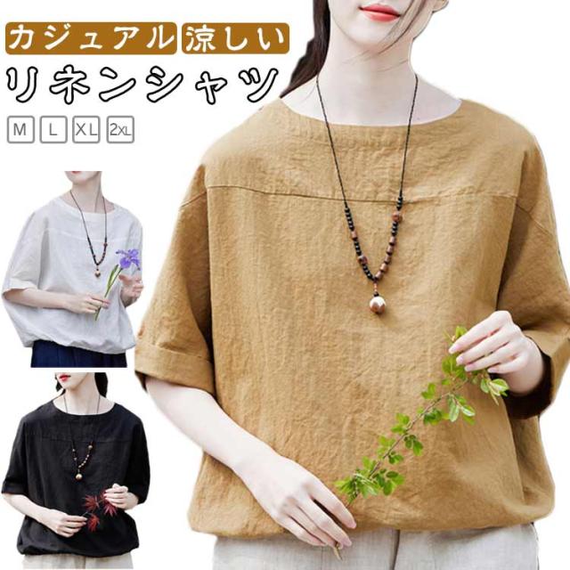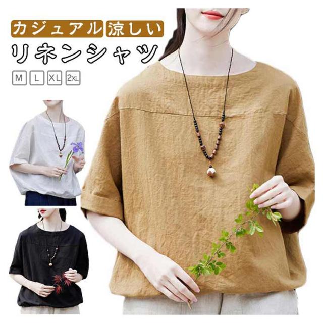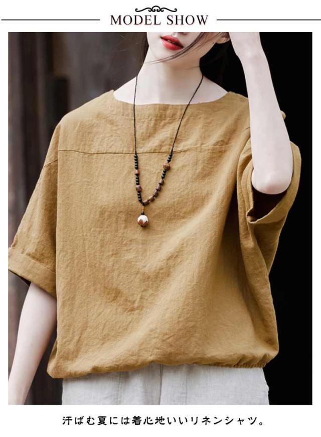 レディース 送料無料 送料無料 無地 麻 シャツ Tシャツ ナチュラル 涼しい リネン 夏 トップス プルオーバー ゆったり 半袖シャツ 薄手 カジュアル 大人 おしゃれ 涼感
