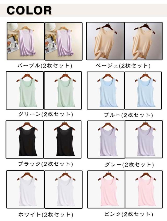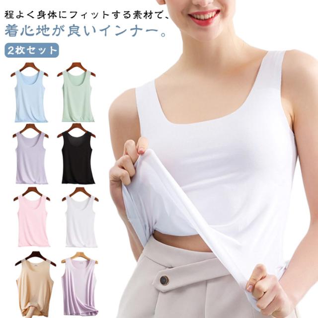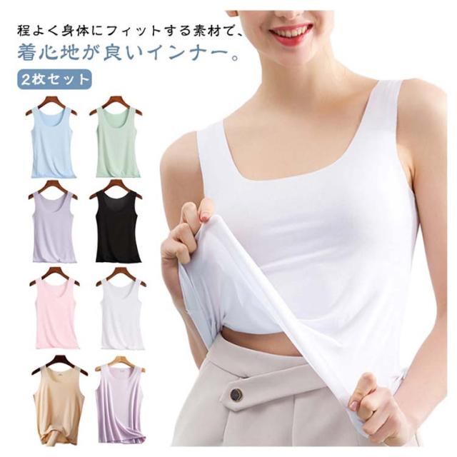 レディース 冷感 ノースリーブ フィット 透けない インナー 2枚セット アイスシルク シームレス スクエアネック 袖無し ブラ紐隠し タンクトップ ルームウェア 下着 薄手 大きいサイズ 黒 肌着 ストレッチ ひんやり シンプル 寝間着 寝巻き 部屋着 母の日