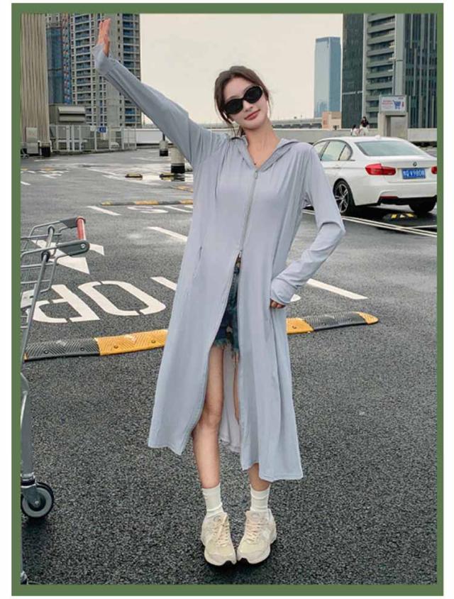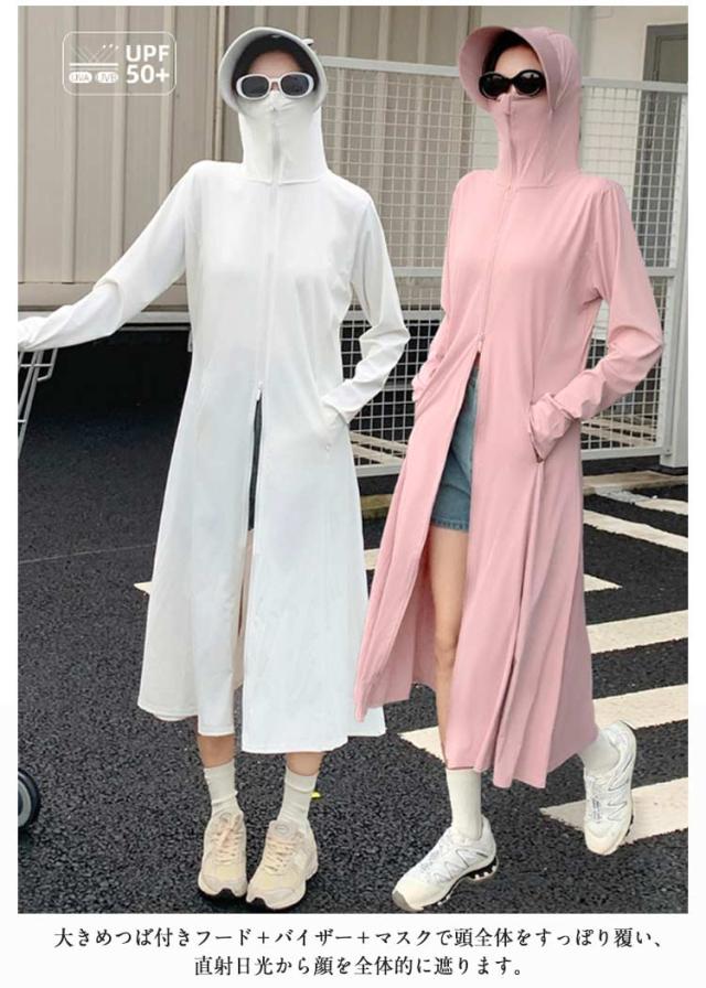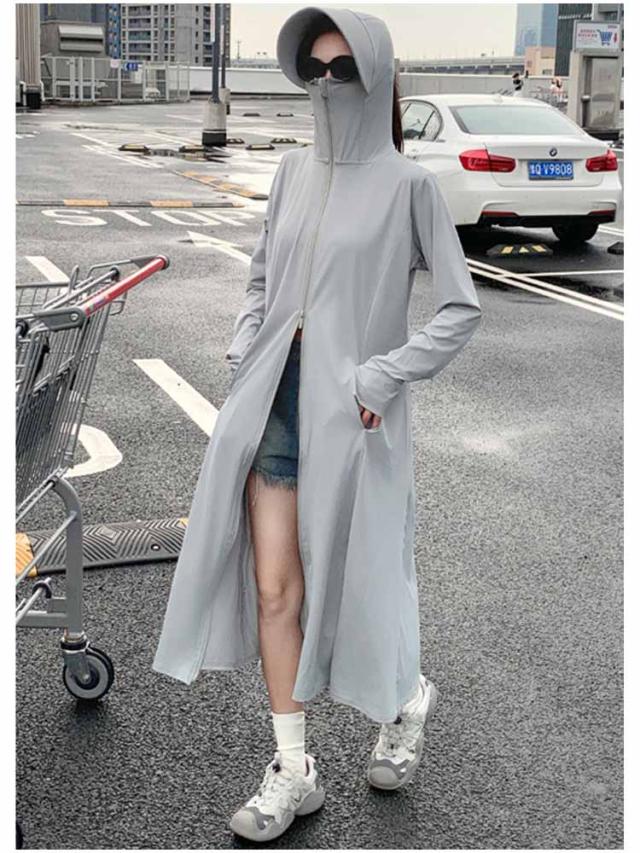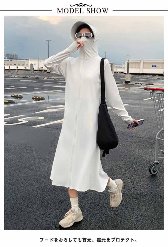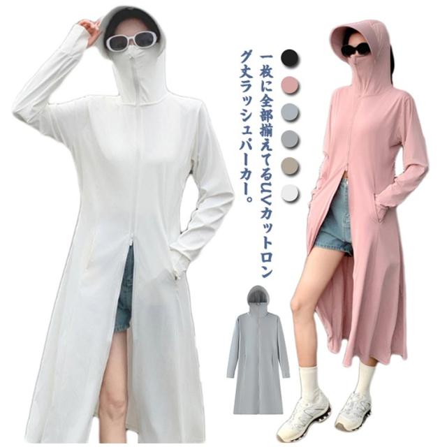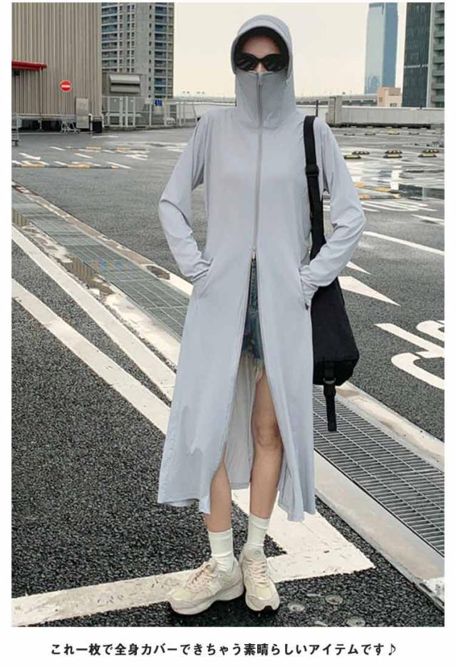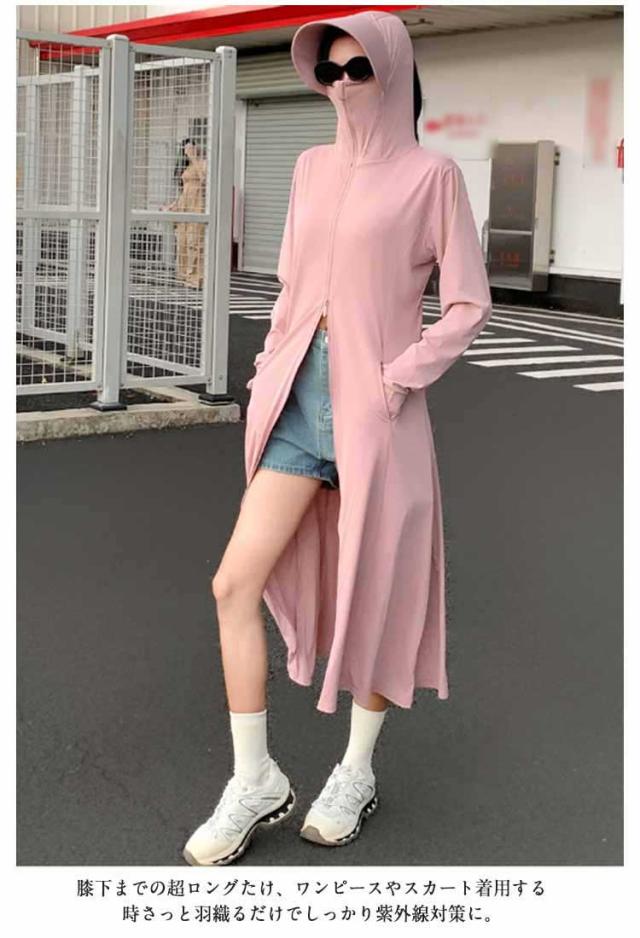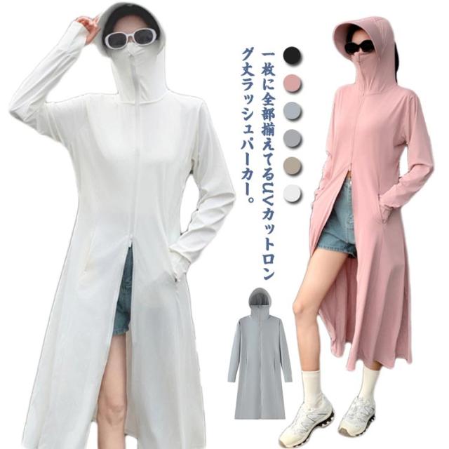 パーカー ロング パーカー 春夏 送料無料 送料無料 UV uvカット ラッシュガード レディース 羽織り 薄手 トップス ひんやり 長袖 フード付 ジップアップ ダブルファスナー 体型カバー 指穴 接触冷感 ストレッチ