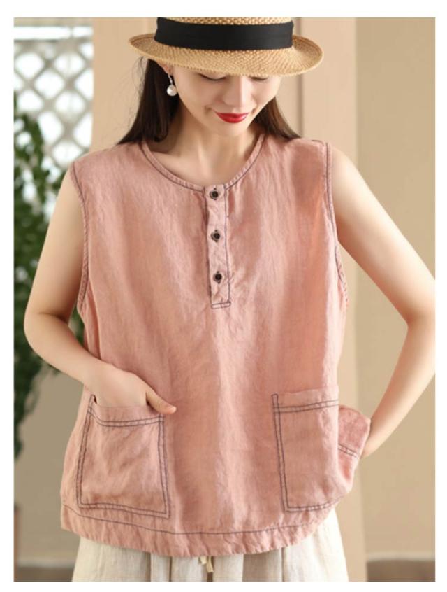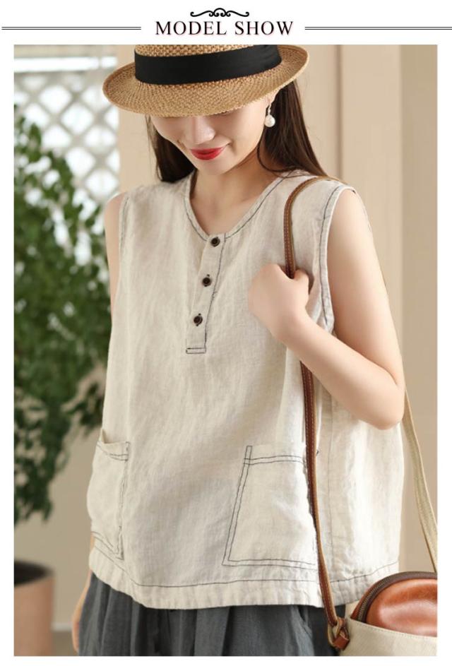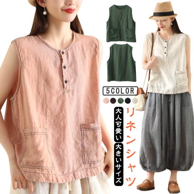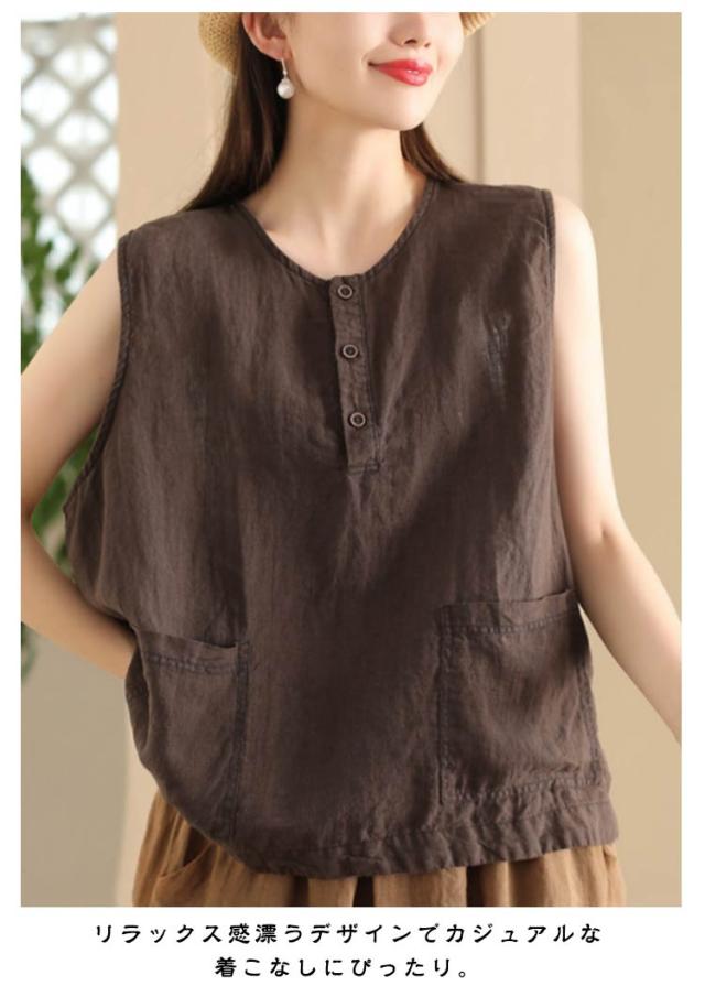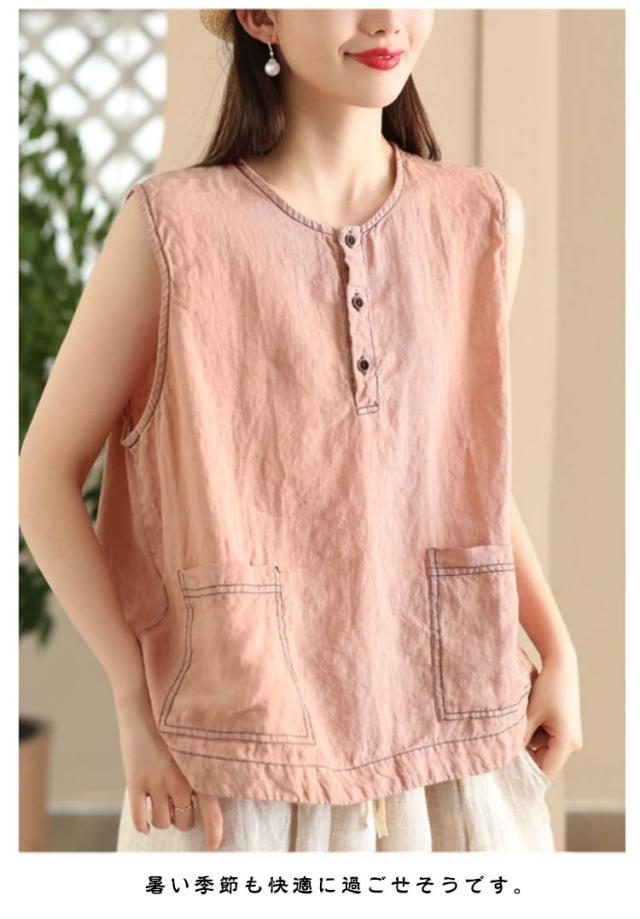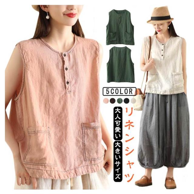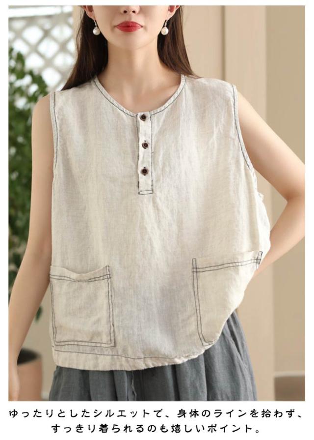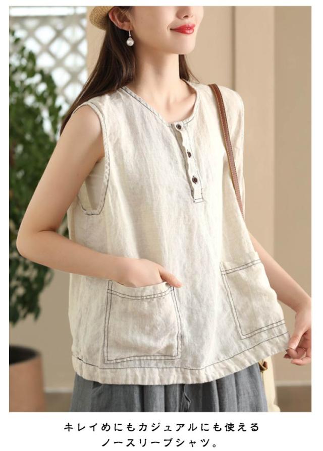 ノースリー リネンシャツ 袖なし トップス 送料無料 綿麻 レディース ノースリーブシャツ 送料無料 カジュアル シャツブラウス タンクトップ 春 夏 シンプル 大人可愛い