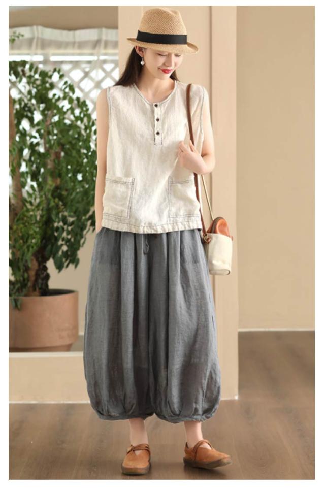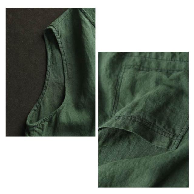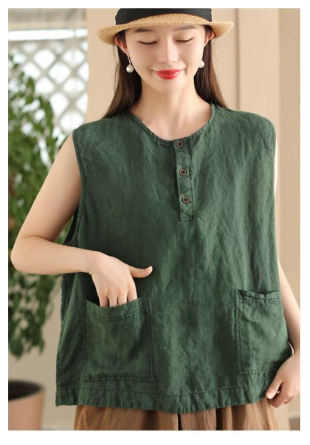 | シンプルながら表情豊かなリネン風ノースリーブブラウス。 軽くてサラッと気持ちいいリネン風生地が嬉しい!コットンと麻のナチュラルな風合いがGOOD◎ ナチュラルなシワ感、透け感も楽しめる薄手の生地は、軽やかで涼やかな着心地。 締め付け感の少ないゆったり設計。ふんわりとラクチンな着心地で1日着ても疲れにくい! シンプルにワイドパンツやスカートと合わせてもこなれ感のある印象に◎ | |