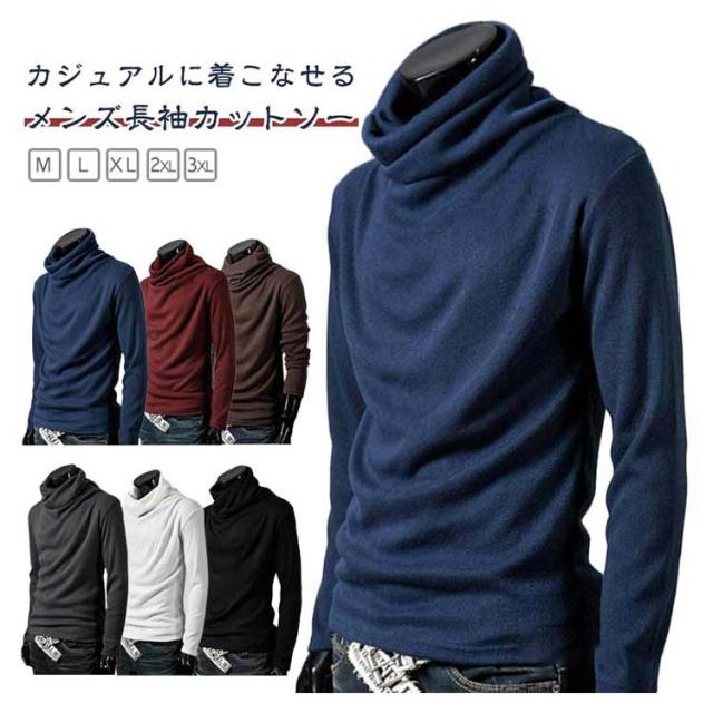 カットソー シンプル Tシャツ 長袖 春 トップス タートルネック くしゅくしゅ シャツ メンズ おしゃれ レイヤード ロンT トレーナー カッコイイ インナー スウェット 無地 長袖Tシャツ 重ね着 秋 冬 カットソー 普段着 通勤 通学 おしゃれ