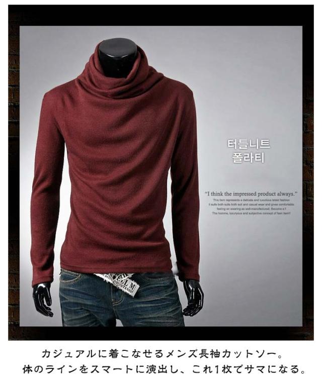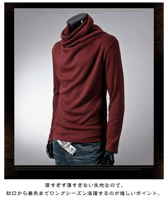 | くしゅくしゅしたタートルネックが旬顔に◎ カジュアルに着こなせるメンズ長袖カットソー。 体のラインをスマートに演出し、これ1枚でサマになる。 厚すぎず薄すぎない生地なので、秋口から春先までロングシーズン活躍するのが嬉しいポイント。 シンプルで着回しやすいので、 一枚は持っておきたいアイテム。 デニム、チノパン、スウェットパンツなどボトムスを選ばず、1点投入するだけでコーディネートの幅がひろがります。 春秋は一枚で、冬の寒い時期はジャケット、ベスト、カーディガン、コート等のインナーとして大活躍間違いなし! | |