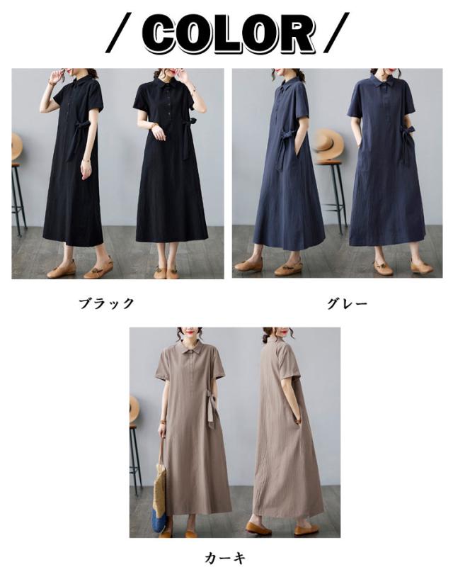 シャツワンピース レディース 半袖ワンピース ワンピース シャツワンピース 夏ワンピース 無地 きれいめ ワンピース 大人ワンピース 秋ワンピース 春ワンピース ロングワンピース 大きいサイズ Aライン通勤 入園式 卒業式