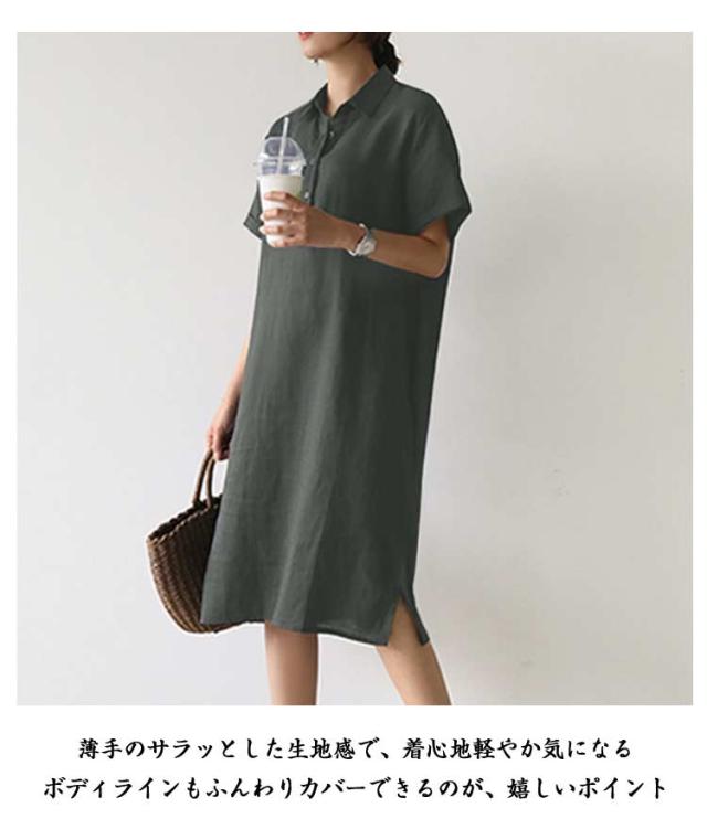 シャツワンピース レディース 半袖ワンピース ワンピース シャツワンピース 夏ワンピース 無地 きれいめ ワンピース 大人ワンピース 秋ワンピース 春ワンピース ロングワンピース 大きいサイズ Aライン通勤 入園式 卒業式