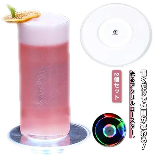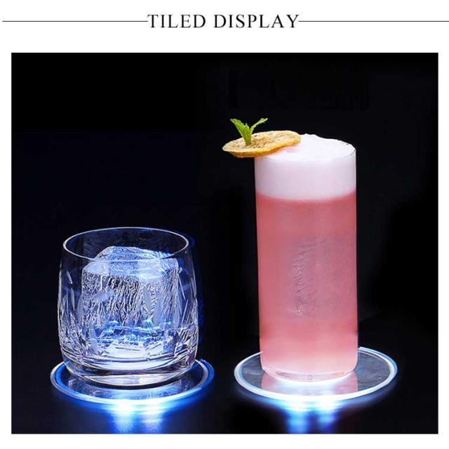 LEDコースターライト 2個セット 寝室 ワイン アクリル 超薄型 防水 光るマット ボトルカップマット カップマット 間接照明 コースター 置物ライト パーティ 2個セット オフィス