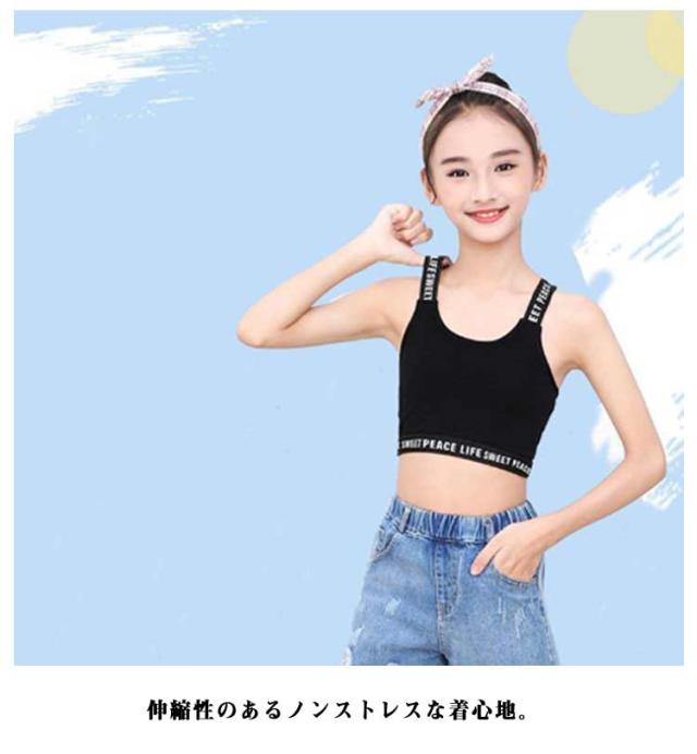 | 小学生高学年〜中学生向け女の子用チューブトップ 2枚セット販売です。 シンプルでおしゃれな人気の英字ロゴテープデザインがポイント。 伸縮性のあるノンストレスな着心地。 見えてもかっこいい英字肩紐のスポブラなので、ブラジャーはまだ早いキッズのチューブトップやブラトップとしても安心して着用いただけます。 動きやすい&踊りやすいのでダンス衣装のインナーにもぴったり。 | |