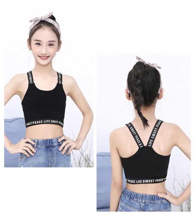 ブラジャー ジュニアブラ 2枚セット 英字ロゴ ダンスインナー ジュニアブラ 女の子 下着 肌着 ノーワイヤー インナー キッズブラ 中学生 薄手 スポーツブラ ハーフトップ シンプル 小学生 高学年 ブラジャー ファーストブラ ダンス かわいい カジュアル