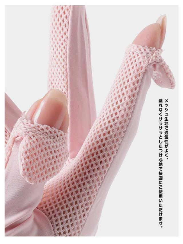 | ひんやりしていて、春夏秋にピッタリのUVカット手袋です。 冷感素材を採用して、水や汗で濡れると気化熱の作用により冷却効果があり、タッチすると涼しい感じがします。 人差し指と親指の指先部分は指出せる設計で、手袋をつけたままスマートフォンやタブレットのタッチパネルが操作できます。 紫外線が気になる時にさっとはめるだけで、日灼けしやすい手を紫外線から守ってくれます。 伸縮性抜群の素材を採用して、適度なフィット感があり、快適な着用感を得られます。 丸洗いできるので、いつでも清潔に使えます。 メッシュ生地で通気性がよく、蒸れなくサラサラとしたつけ心地で快適にご使用いただけます。 腕部分は反射テープがあり、夜間でもご使用いただけます。 夏のUVケアから冬の手荒れのケアまで、日常のハンドケアに幅広くお使いいただけます。 | |