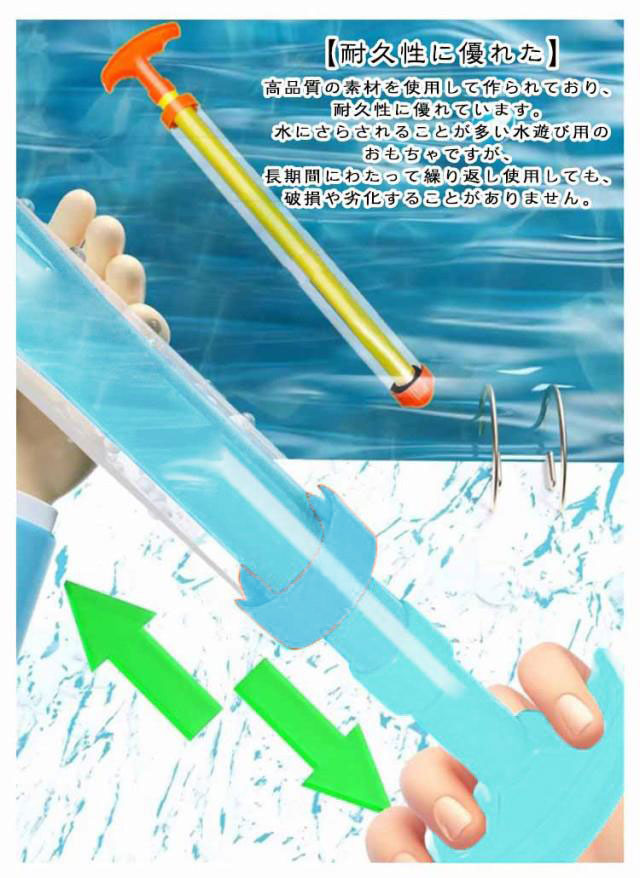 | 花火のようなデザインが特徴の「花火 水鉄砲 ウォーターガン」は、夏の水遊びを一層楽しくします。 【花火のような水鉄砲】この水鉄砲は、超強力な性能を備えており、水を花火のように勢いよく撃ち出します。夏の定番の水遊びに最適なおもちゃで、水ピストルとしての威力は子供から大人まで楽しめます。 【耐久性に優れた】高品質の素材を使用して作られており、耐久性に優れています。水にさらされることが多い水遊び用のおもちゃですが、長期間にわたって繰り返し使用しても、破損や劣化することがありません。 【使い勝手抜群】大きさで、持ちやすく使い勝手が抜群です。先を水の中に入れ、レバーを引いて水を得てから、レバーを押して水を噴霧します。 子供も大人も手に馴染みやすく、快適に水遊びを楽しむことができます。 【親子で楽しめる】この水鉄砲は軽量でコンパクトで、触り心地が良いので、お子様が握りやすくなっています。 プールとビーチに行って、すぐに暑さを吹き飛ばしましょう!親子ゲームとしても最適なこの水鉄砲は、家族みんなで一緒に楽しめるストリームマシンです。暑い今年の夏の外遊びにぴったり! 【多様なシーンで活躍する】この水鉄砲は、様々なシーンで活躍します。バスタブ、ビーチ、スイミングプール、公園、学校などで大成功を収めることでしょう。暑さ対策としても最適で、涼しさを取り戻すことができます。 | |
