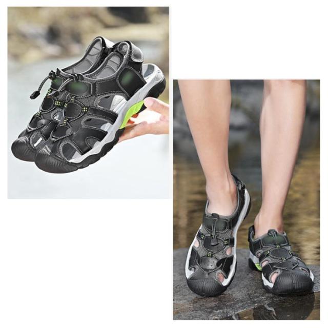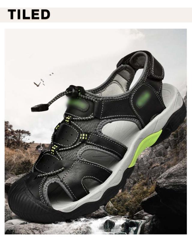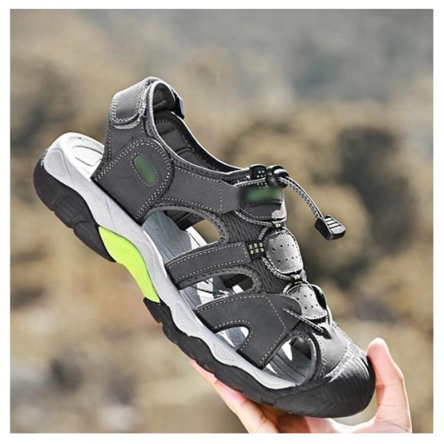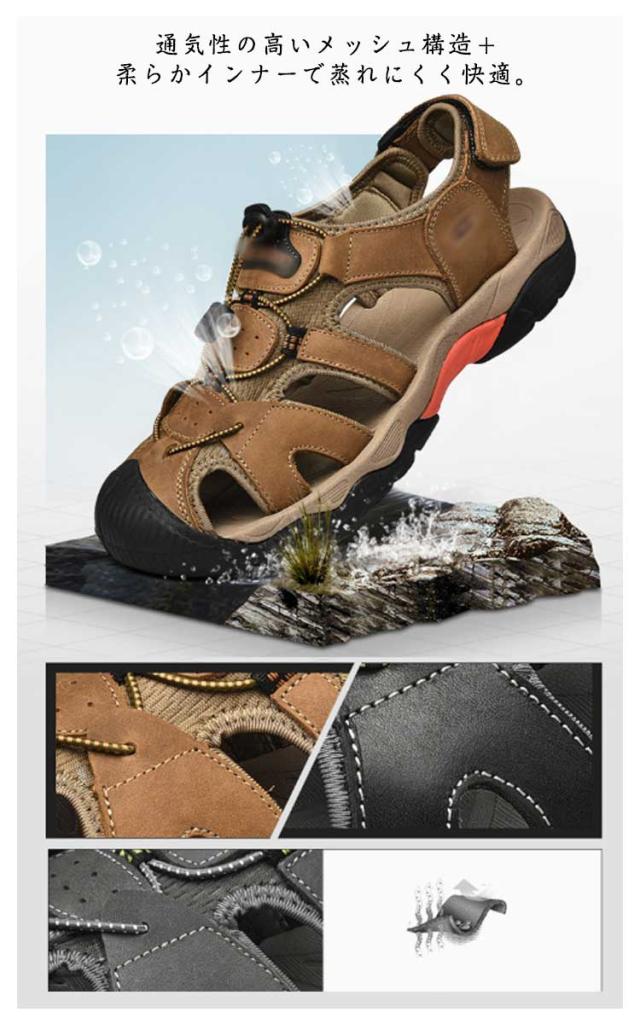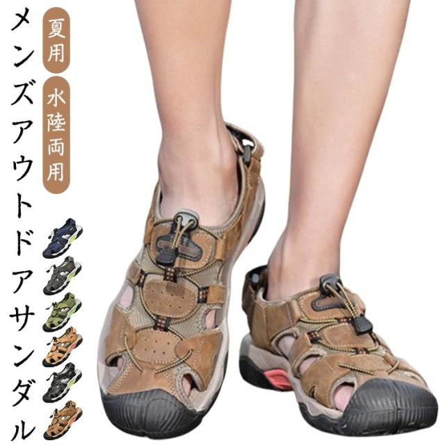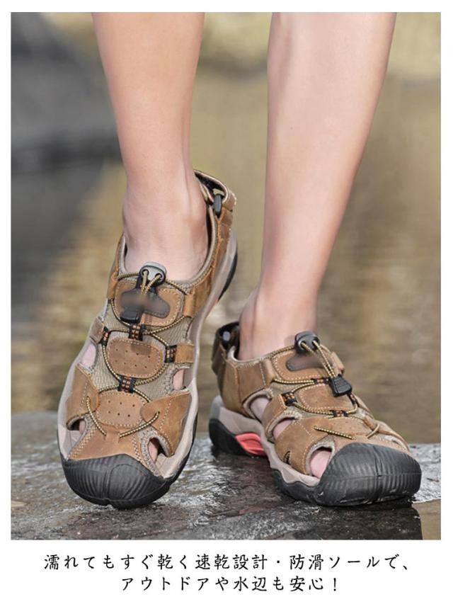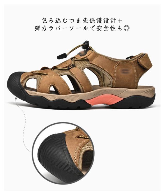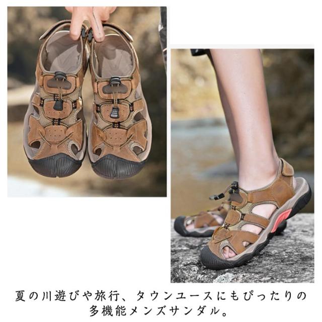 ビーチサンダル サンダル つま先保護 メンズ レザー スポーツサンダル 夏用 シューズ マジックテープ コンフォートサンダル 歩きやすい 疲れない カジュアル サンダル アウトドア キャンプ 釣り 水陸両用