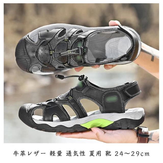 | メンズ アウトドアサンダル 牛革レザー 軽量 通気性 夏用 靴 24〜29cm 本革の上質感とアウトドア性能を両立! 夏の川遊びや旅行、タウンユースにもぴったりの多機能メンズサンダル。 牛革アッパーはしなやかで足に馴染み、履くほど味わい深く。 通気性の高いメッシュ構造+柔らかインナーで蒸れにくく快適。 包み込むつま先保護設計+弾力ラバーソールで安全性も◎ 前面のドローコード+後部マジックテープ式ベルトで足にしっかりフィット。 濡れてもすぐ乾く速乾設計・防滑ソールで、アウトドアや水辺も安心! 街履きにもアウトドアにも映えるクラシックな色味とデザインで、夏の一足にぴったりです。 | |