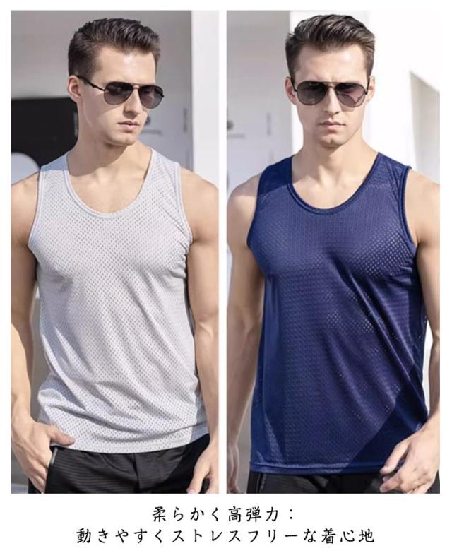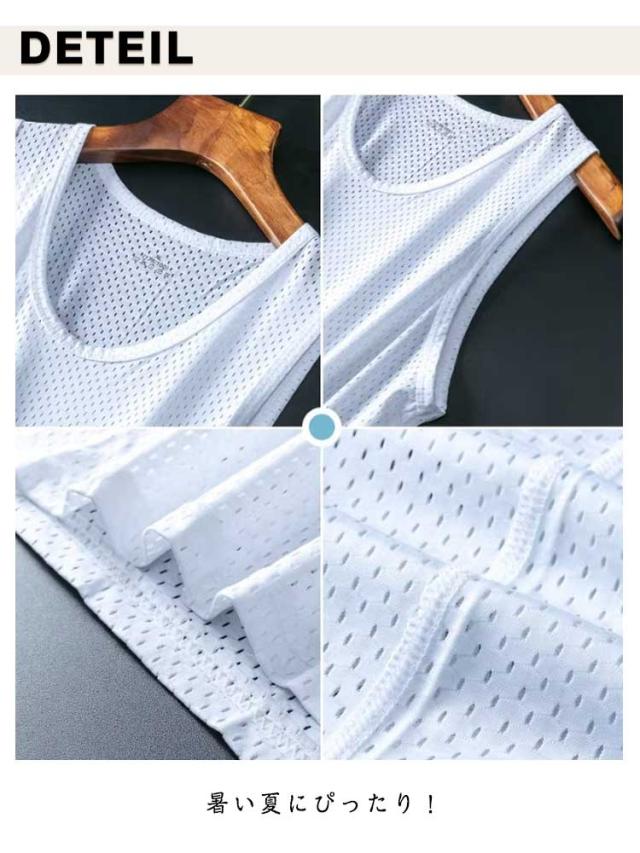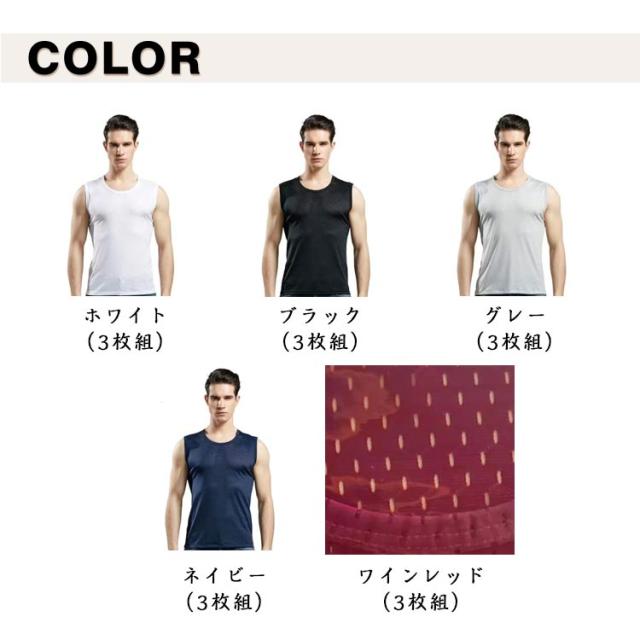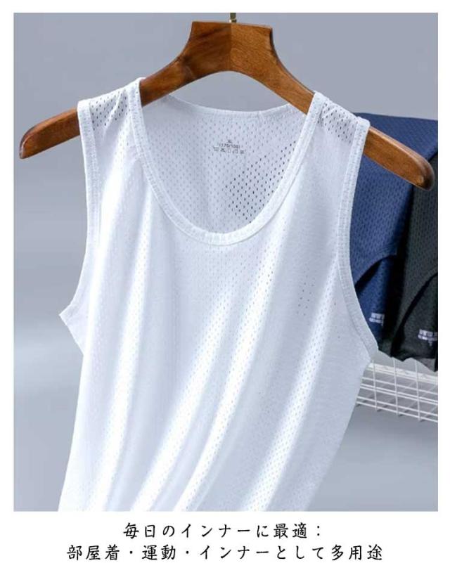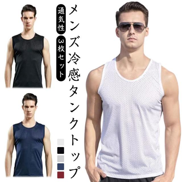 インナーシャツ 肌着 下着 接触冷感 アイスシルク 3枚セット メッシュ メンズ タンクトップ スポーツ トレーニングウェア 筋トレ ノースリーブ 通気性 吸汗 速乾 男性用 アンダーシャツ ルームウェア