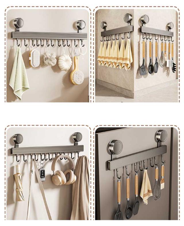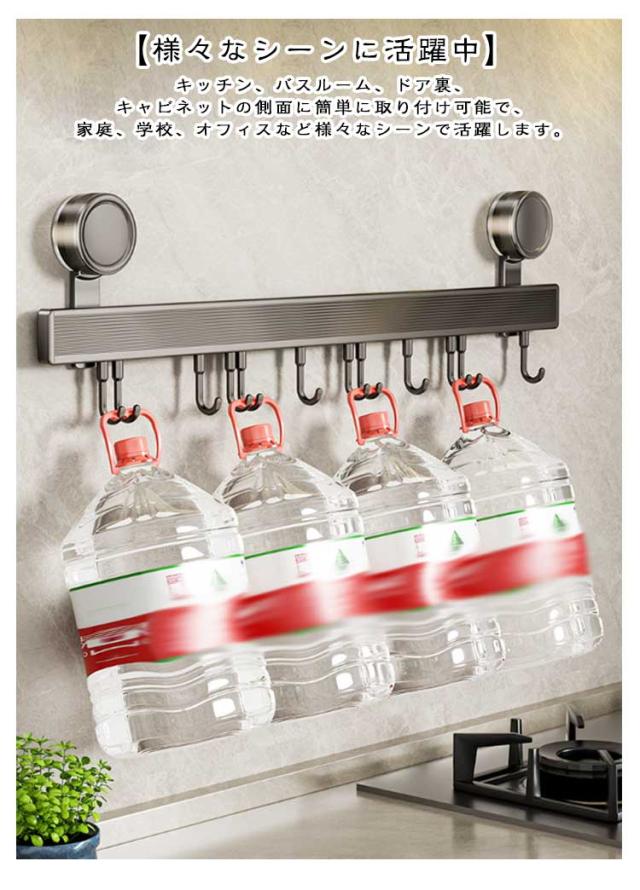 | 強力吸盤 防水防錆 大容量収納 キッチンツールフック 長さ30/40/50/60cm 可動式フック6個/8個/10個/12個 【使いやすい】 この製品は、壁に穴を開けることなく、吸盤を使って簡単に取り付けられます。取り付け後すぐに使用可能で、静置の必要はありません。取り外し時も壁に痕が残らず、賃貸住宅や壁を傷つけたくない場所にぴったりです。 【材質】 アルミニウムは密度が小さく軽量な金属です。アルミはステンレスより値段が高いです。ステンレスは時間が経つと錆びてしまうこともありますが、アルミは長い時間たっても錆びません。是非ご安心してご使用いただければ幸いです。 【防錆】 弊社キッチンツールフックはアルミニウム製です。長持ちで、錆びることがありません。油や水がついても、滑らかな表面を保ちます。 キッチンなどの濡れた環境下でも安心してお使いいただけます。 【強力粘着吸盤】 工具やネジを使わずに壁に穴を開ける必要なく、強力な粘着吸盤で固定ます。正しく取り付けておけば落ちる心配はありません。ご注意:タイル、ガラス、大理石、木製の壁、金属など、ほとんどの種類の滑らかな壁に対応できますが、粗いセメント壁、レンガ壁など粗すぎる表面には適用していません。 【可動式フック】 可動式フックなので、フックを自由に調整することができます。タオル、お玉などを綺麗に収納することができます。 【様々なシーンに活躍中】 キッチン、バスルーム、ドア裏、キャビネットの側面に簡単に取り付け可能で、家庭、学校、オフィスなど様々なシーンで活躍します。 使い方の説明 1、壁を綺麗にする 2、保護カバーを剥がす 3、壁に押し付けて時計回りに回して吸盤を固定 4、すぐに使える! | |