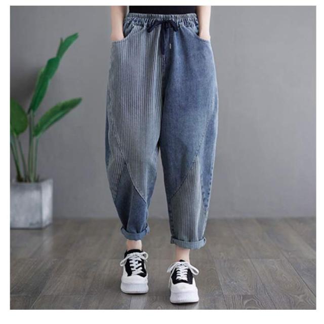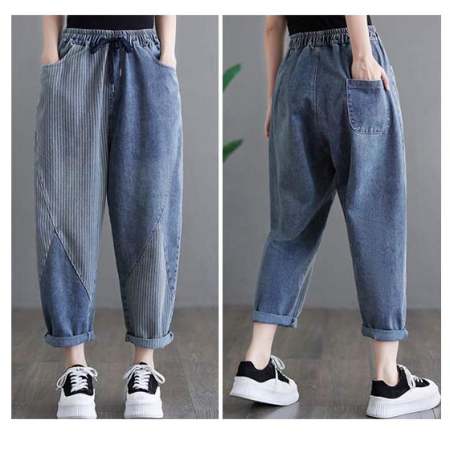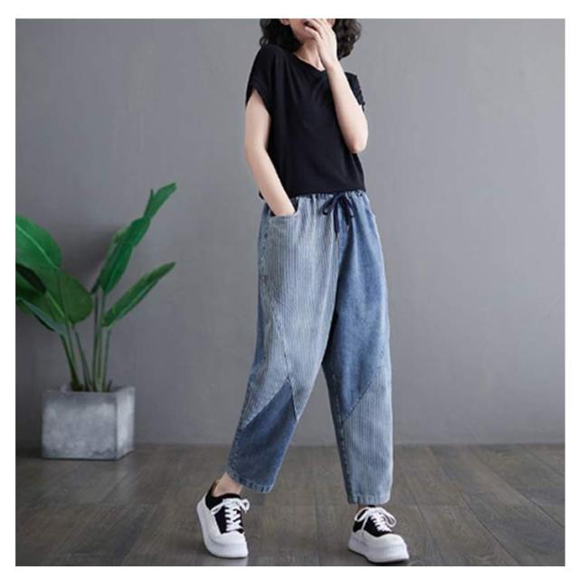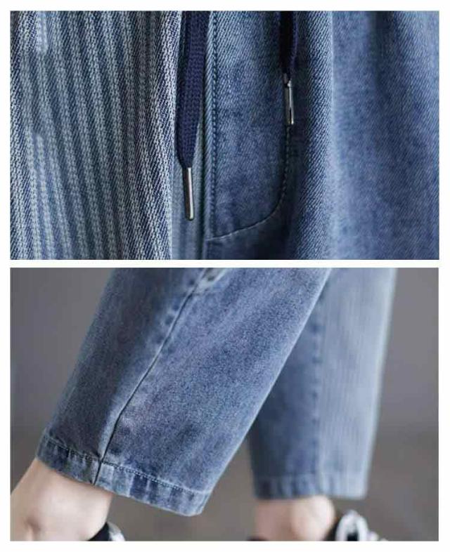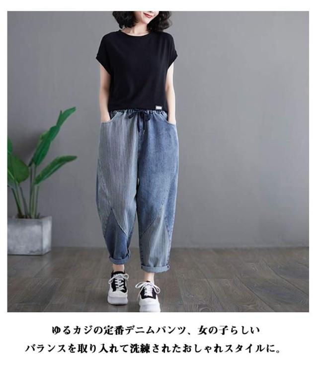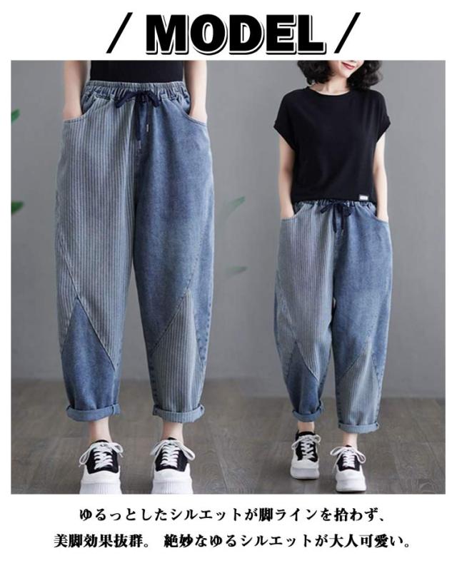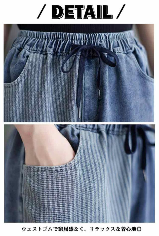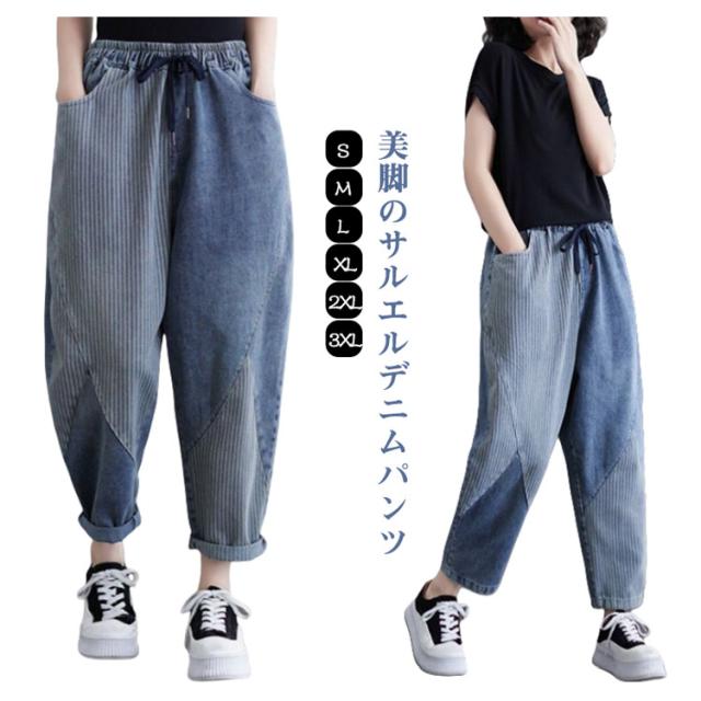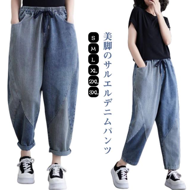 体型カバー ボトムス ウェストゴム 大きいサイズ サルエル サルエルパンツ テーパードパンツ ゆったり 春夏 秋 サルエルパンツ 美脚 ウォッシュ加工 ジーンズ Gパン レディース 大人 女性 ウエストゴム 快適 ポリエステル