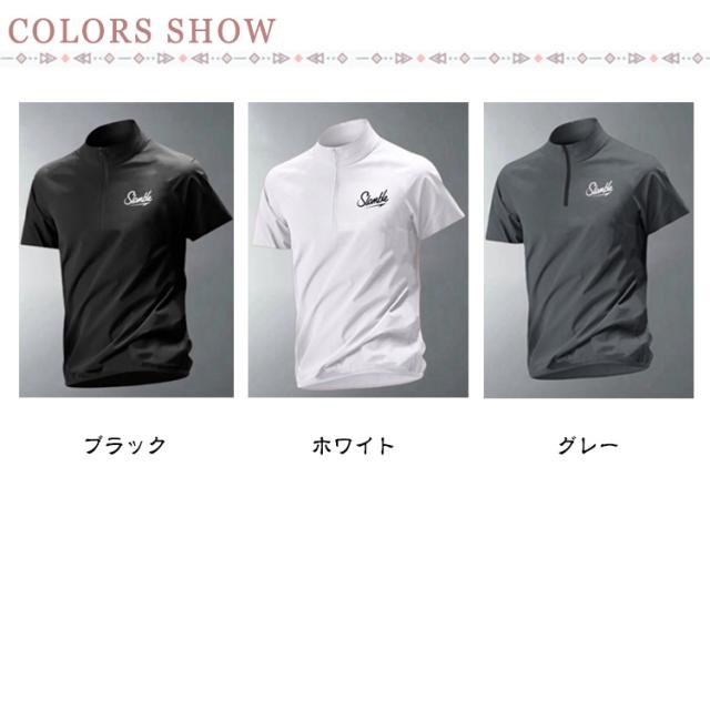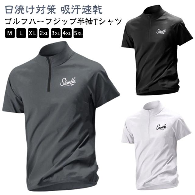 ハーフジップ モックネック メンズ Tシャツ 半袖 スポーツウェア ポロシャツ ゴルフウェア 夏 ドライ 作業着 吸水速乾 UVカット トップス 通気性 半袖ポロシャツ ゴルフウェア 夏 春 父の日 ギフト