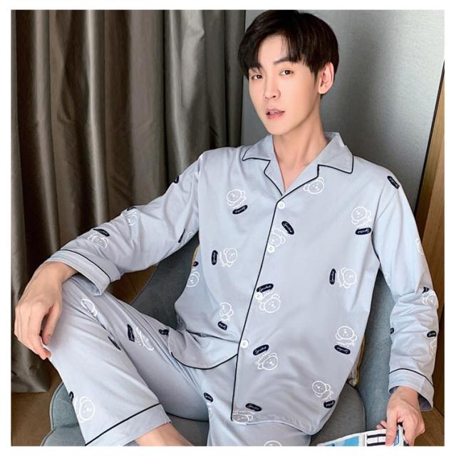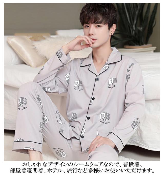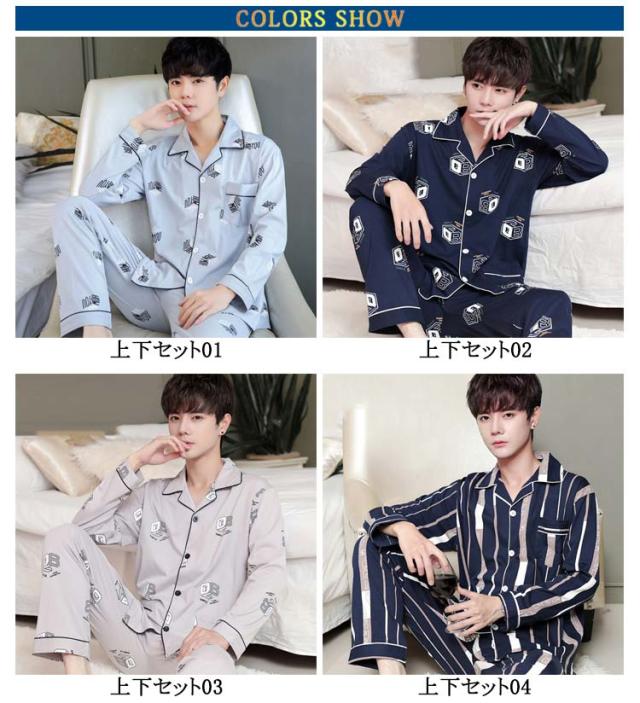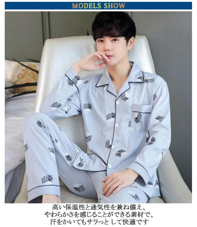 パジャマ メンズ 上下セット 長袖 定番 寝巻き 寝巻 部屋着 ルームウェア ナイトウェア メンズパジャマ 長袖Tシャツ 長ズボン ロングパンツ クルーネック セットアップ 丸首 上下 セット 薄手 ゆったり 無地 シンプル カジュアル 男性 春 秋