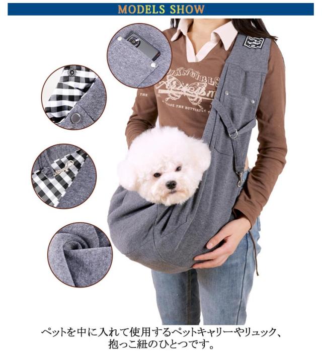| 犬や猫、ペットの体にフィットするような柔らかい素材でできた肩掛けバッグです。 ペットを中に入れて使用するペットキャリーやリュック、抱っこ紐のひとつです。 飼い主さんと密着して色々な場所へお出かけやお散歩を楽しめます | |