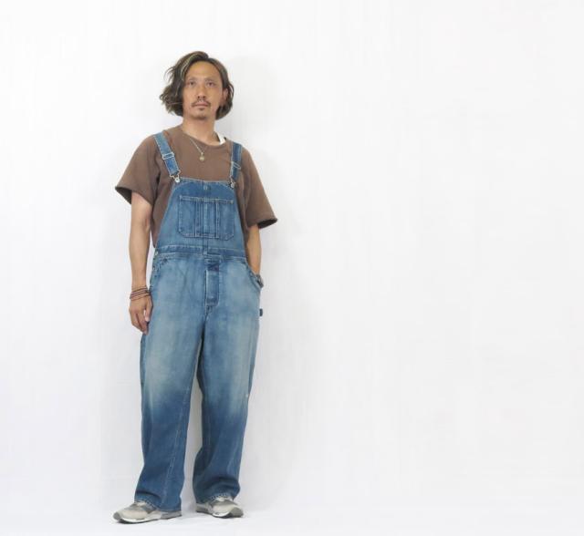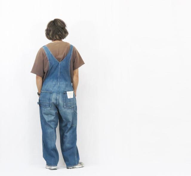 加工にこだわったデニムのオーバーオール。