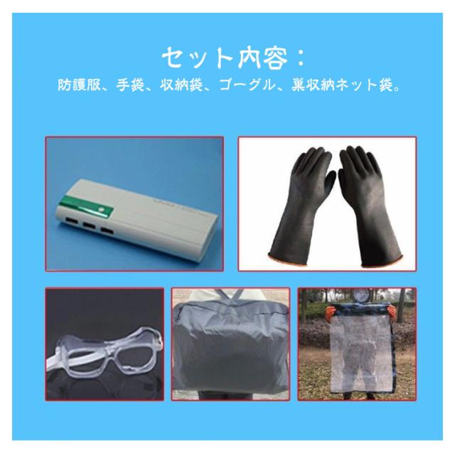 スズメ蜂 スズメ蜂 スズメバチ駆除用蜂防護服 突き出るマスク ハチ防護服 防護服 つなぎ服 フェイスネット付き 蜂の巣 駆除 蜂巣 害虫駆除 保護装備 通気性 収納袋 万全防護服 扇風機付属 3つファン付き 手袋 虫よけ メガネ付き 送料無料 160cm-180cm