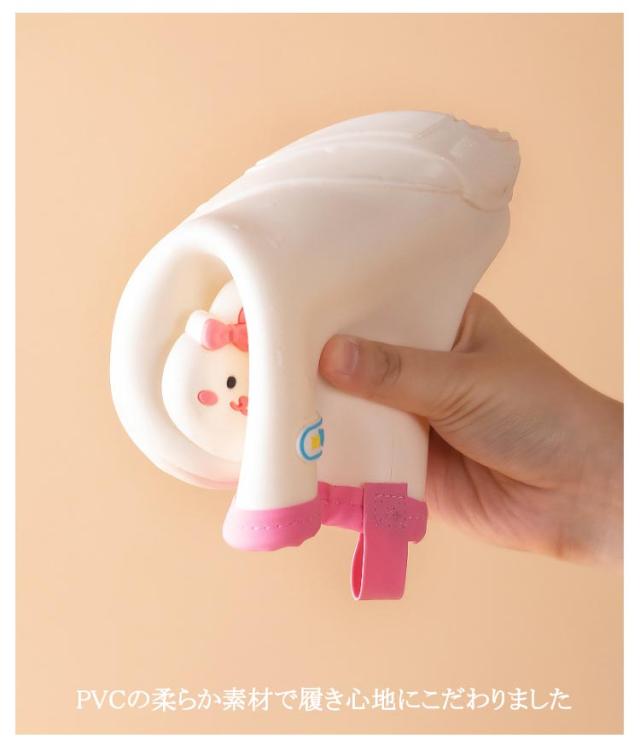 | 中敷を付す。取り出しで乾かして使えるので衛生的。 ショート丈なので歩きやすい 凹凸加工で滑りにくい PVCの柔らか素材で履き心地にこだわりました | |