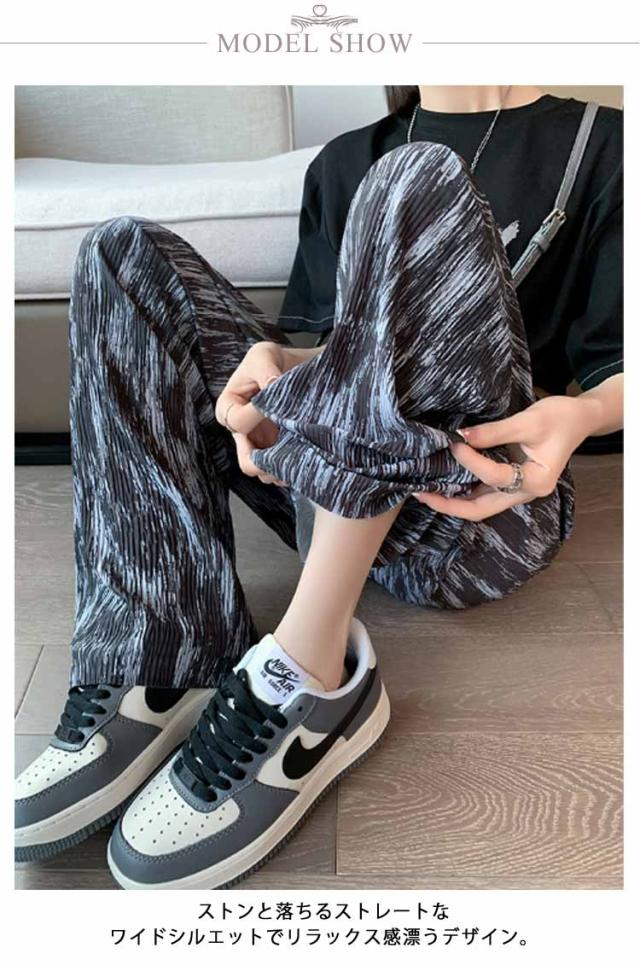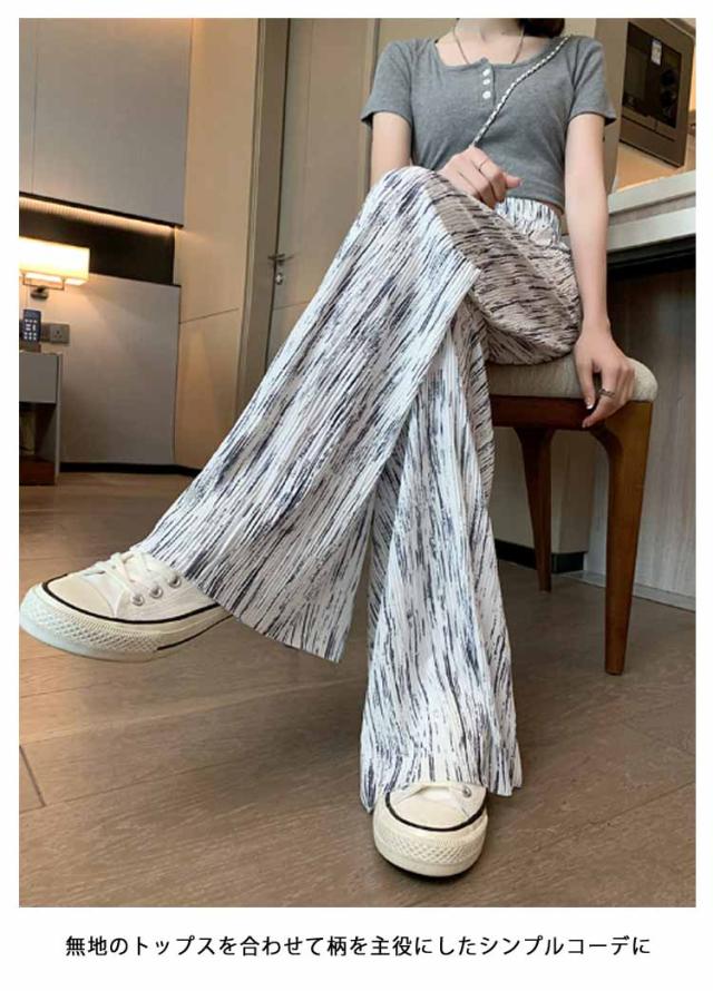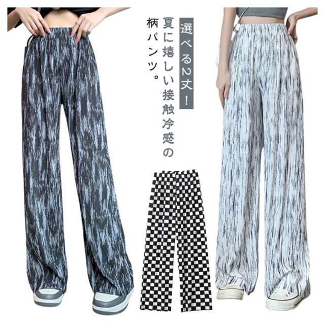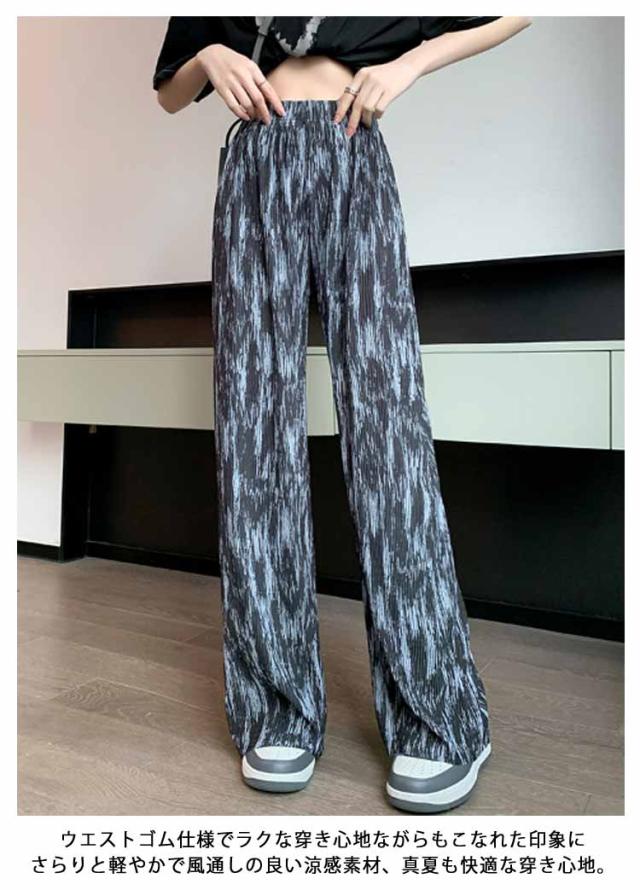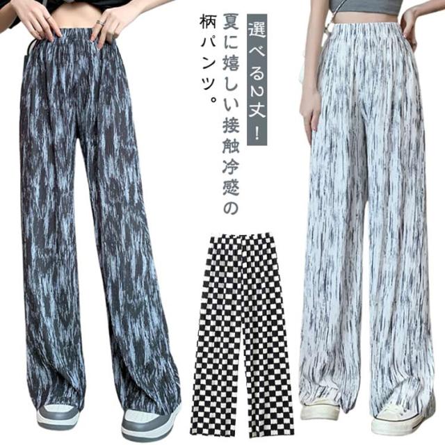 ロングパンツ UVカット イージーパンツ ストレートパンツ ワイドパンツ 夏 冷感 総柄 レディース 接触冷感 柄パンツ 薄手 涼しい 涼やか ワイドパンツ 部屋着 紫外線対策 ボトムス セルフカット ハサミで切れる