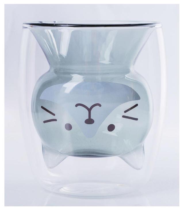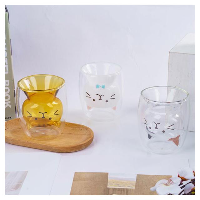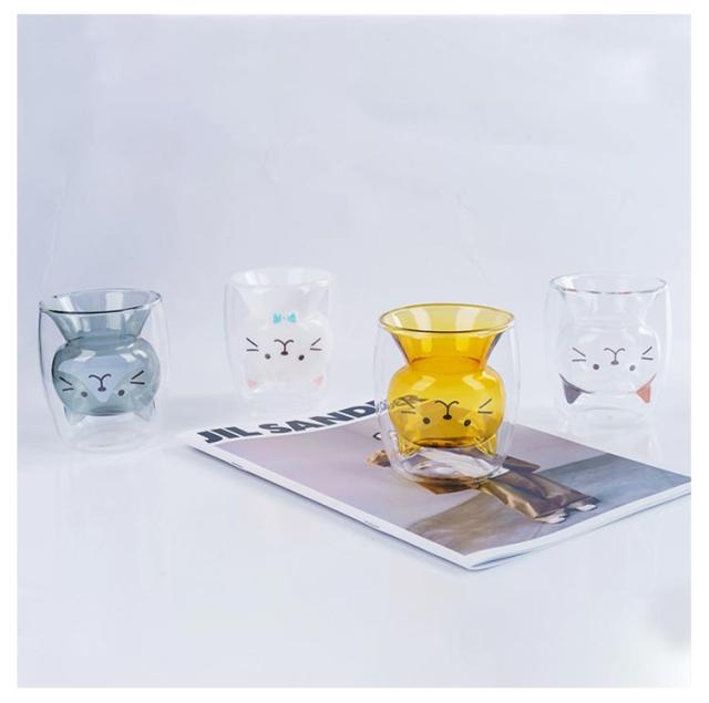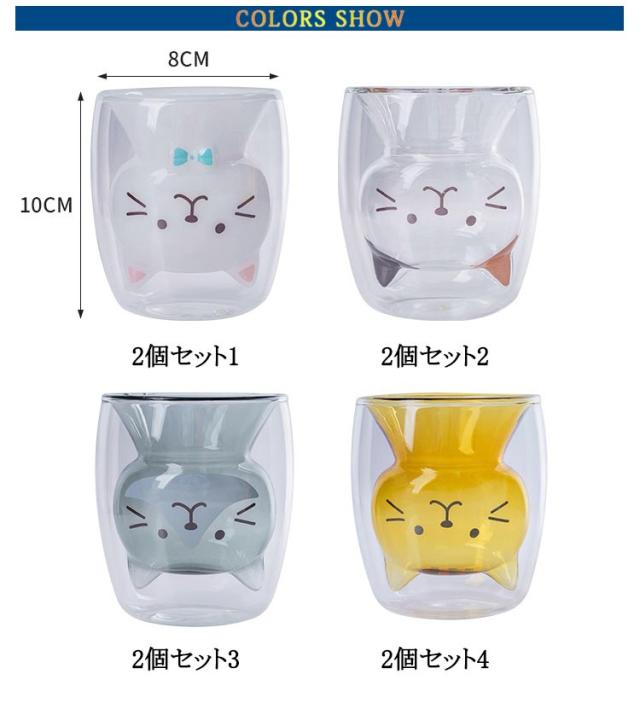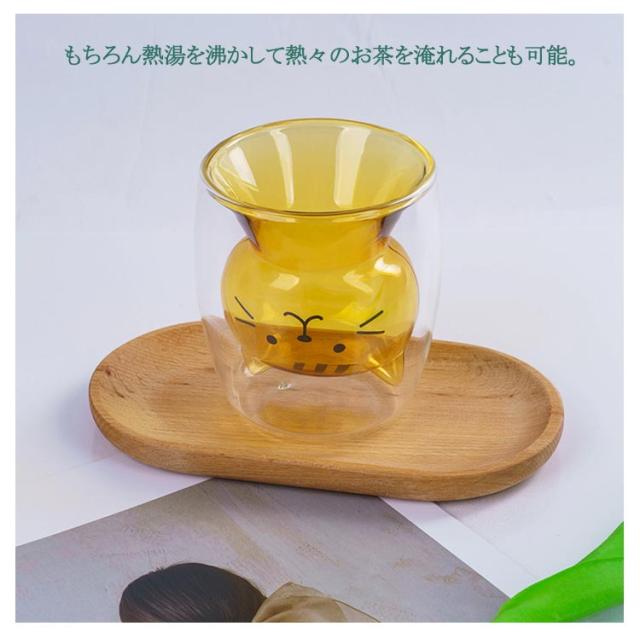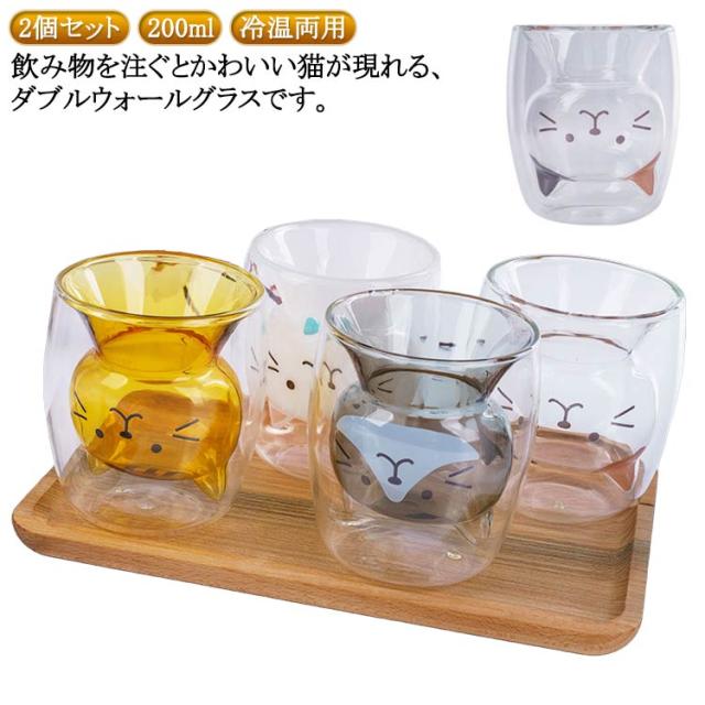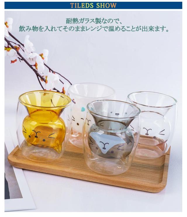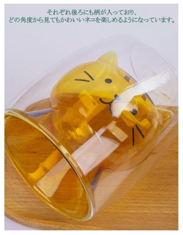 ガラスコップ プレゼント ネコ柄 二重構造 耐熱ネコグラス ネコモチーフ かわいい 耐熱グラス 冷温両用 ガラスコップ ギフト レンジ・食洗器OK ジュース 牛乳 ゼリー かき氷